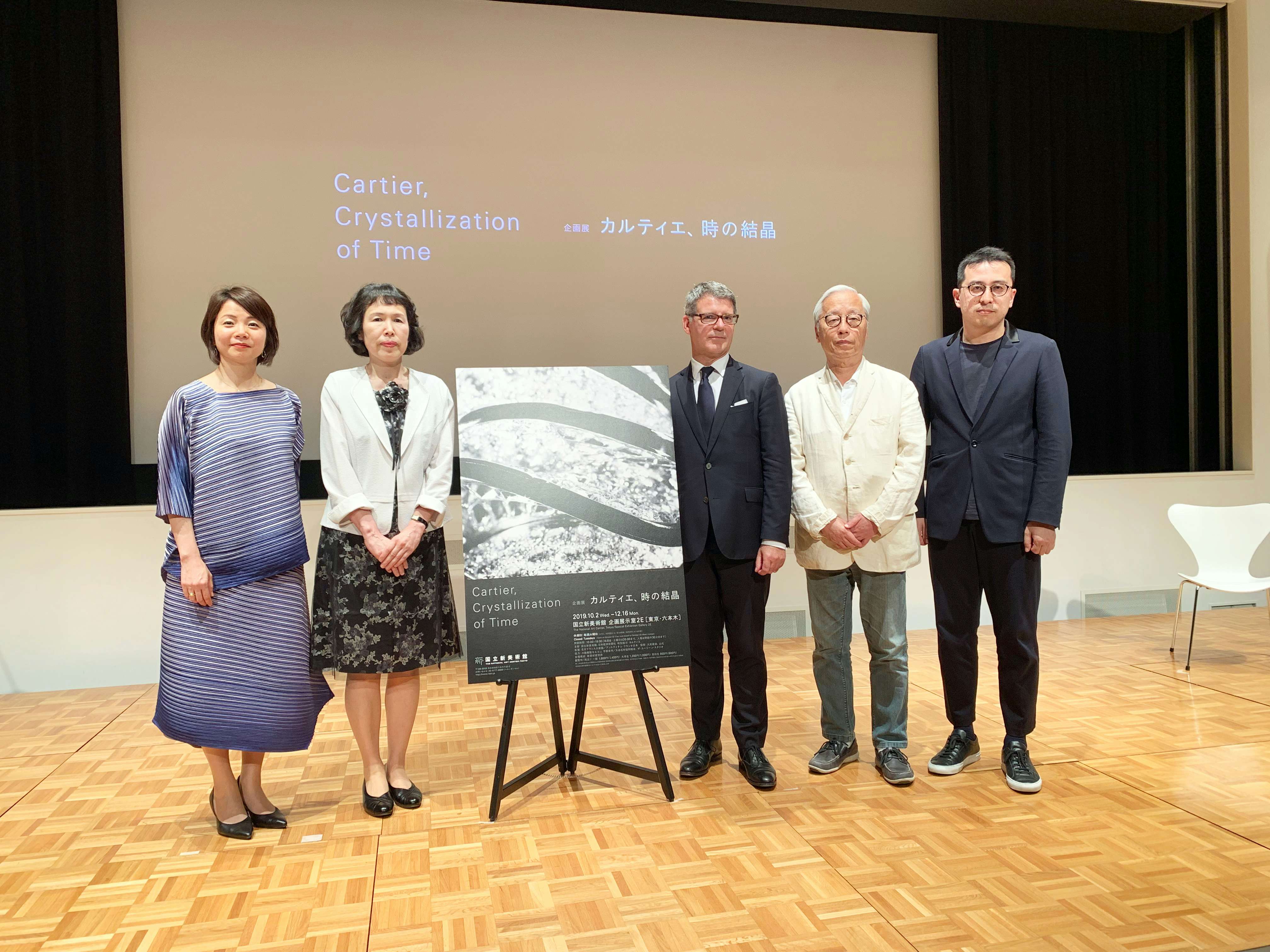 左から本橋弥生(国立新美術館主任研究員)、青木早苗(国立新美術館長)、ピエール・レネロ(カルティエ インターナショナルスタイル&ヘリテージ ディレクター)、杉本博司(新素材研究所)、榊田倫之(新素材研究所)