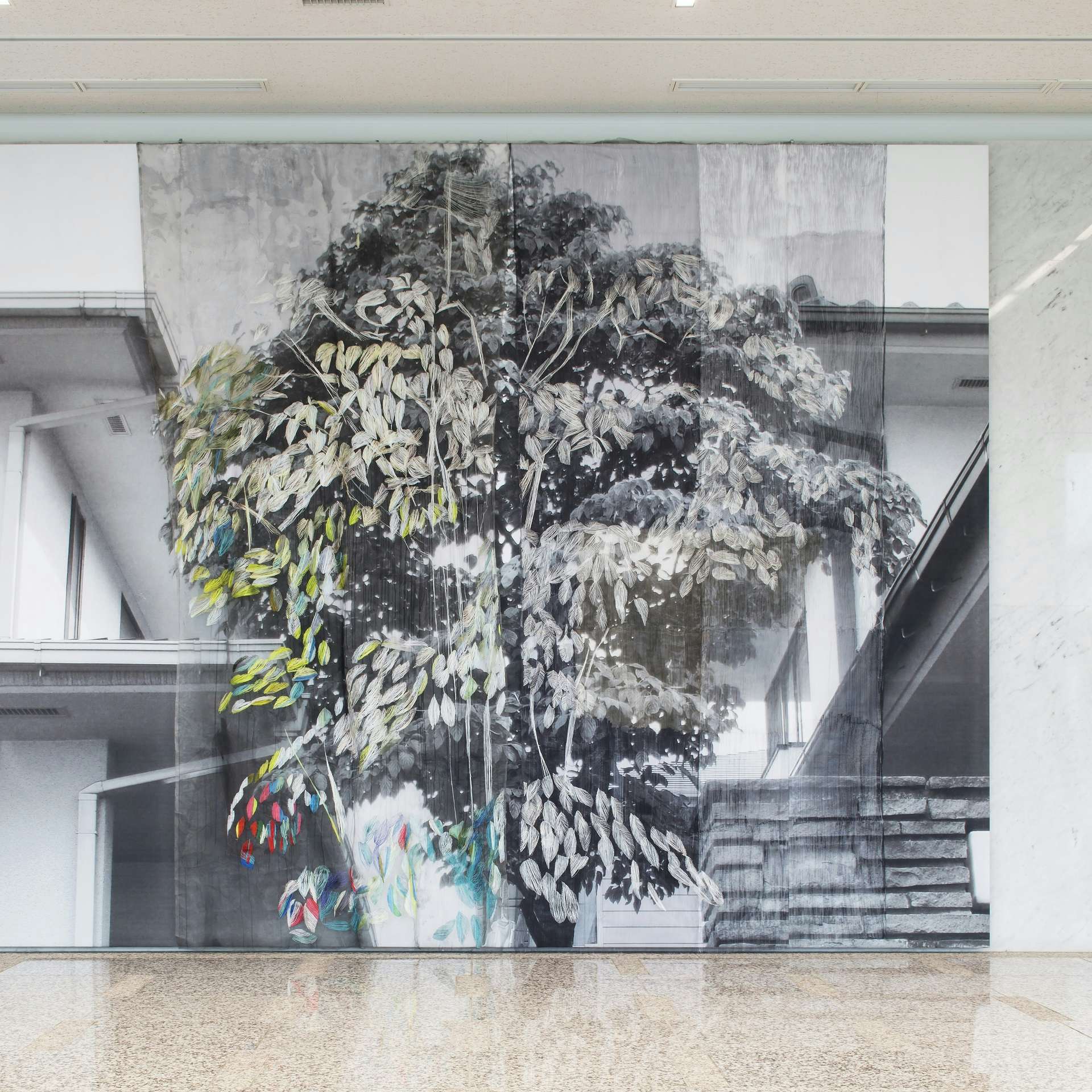 15年に帰国し、高崎に居を構えた竹村。写真やドローイングの上に刺繍を施した布を重ねる作品で、失われたものの存在や記憶をとらえてきた竹村は、家族についても制作の重要なテーマとしてきた。本展では、東京にあった実家の取り壊しと両親の高崎への移住を機に、東京と高崎、過去と現在をオーバーラップさせ、群馬で生み出された最新の絹糸も用いながら記憶や時間の作品化を試みる。