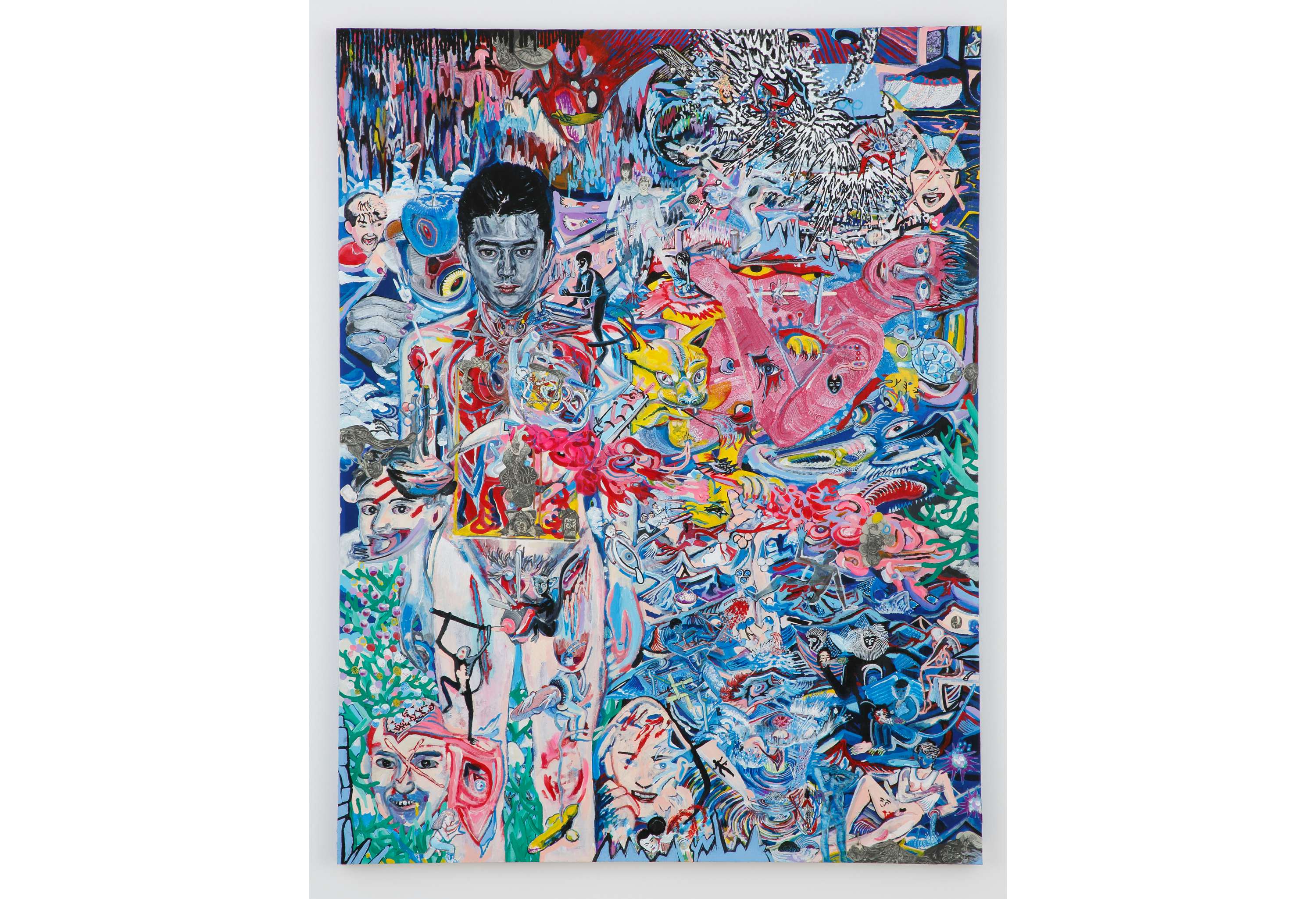 佐藤允 冒険 2017 ペーパーコラージュしたパネルにアクリル、インク、鉛筆、色鉛筆 145.5×112.0 cm © Ataru Sato