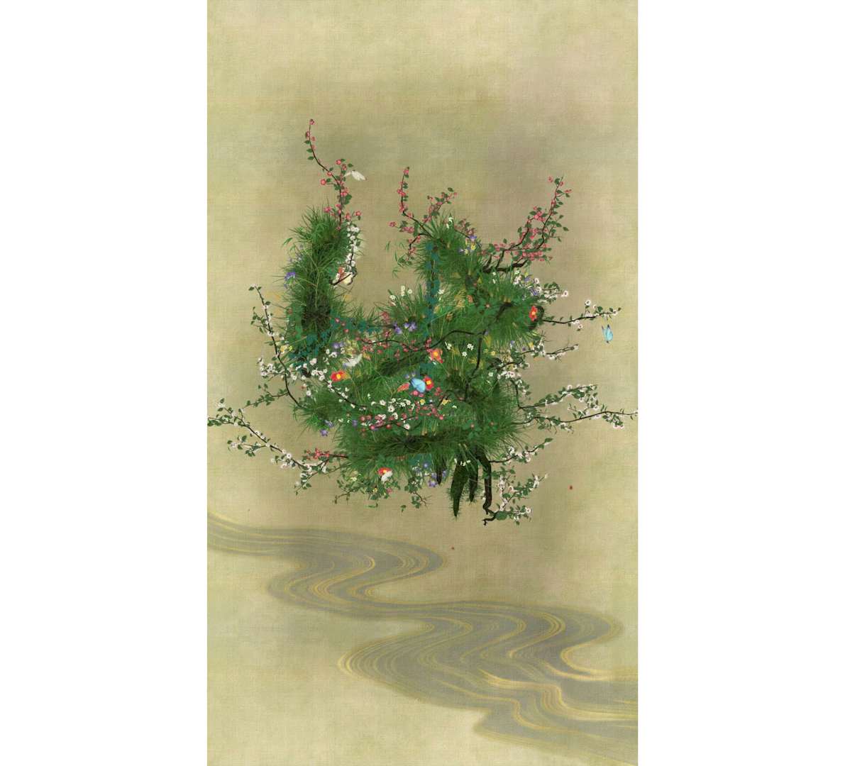 なお本展では細⾒美術館が協⼒し、京都出⾝で江⼾時代を代表する画家・伊藤若冲による代表作《鶏図押絵貼屏⾵》の⾼精細複製(レプリカ)を展⽰。加えて、細⾒美術館館⻑・細⾒良⾏監修のもと、京友禅と⽇本画の⼯房である豊和堂の⽇本画絵師たち(RINne Associe)がつくりあげた、伊藤若冲《鶏図押絵貼屏⾵》と初⾳ミクが融合した⾁筆絵画も特別出展される。