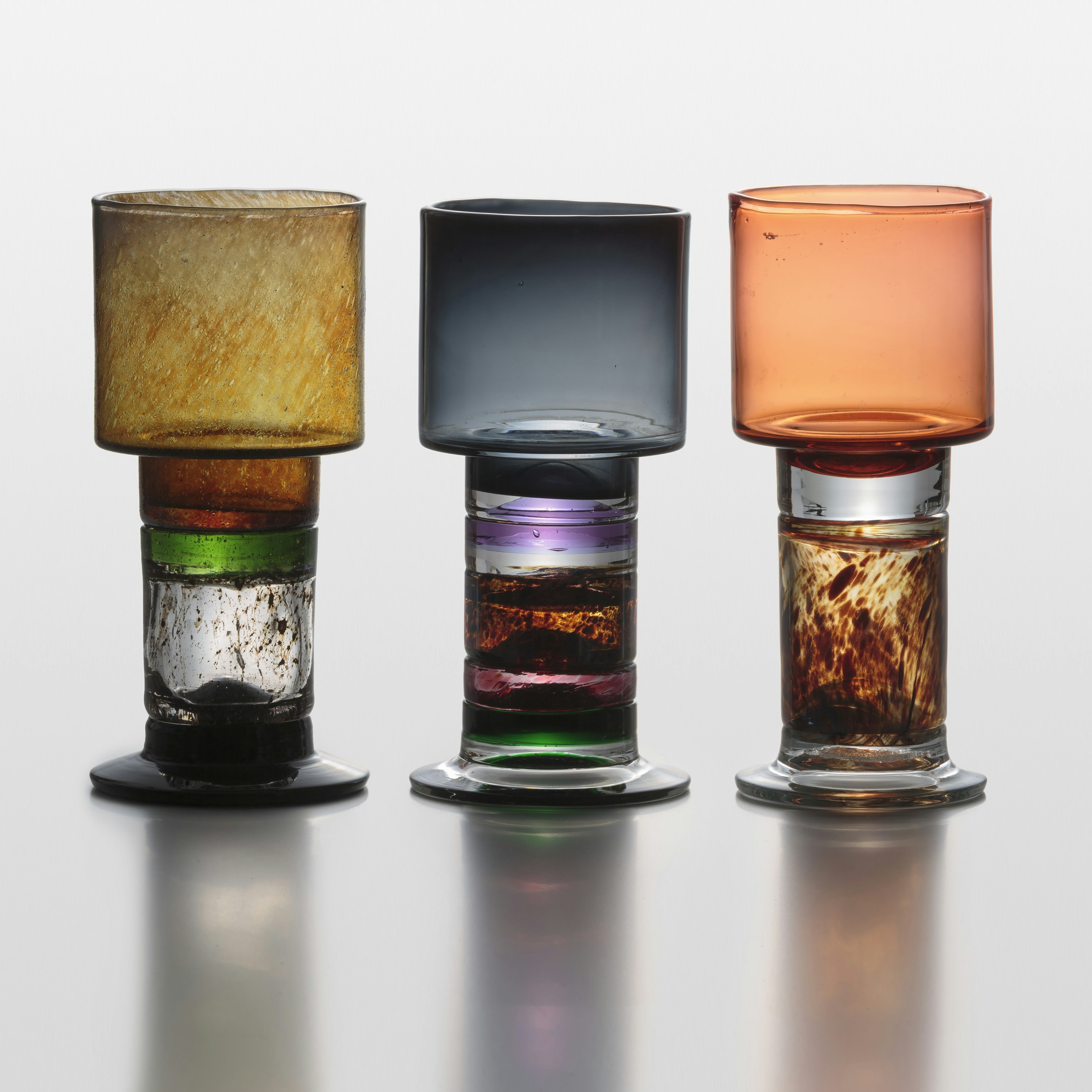 当初はおもに陶磁器のデザイナーとして活動していたフランクだが、46年よりイッタラ社でガラス・デザインに携わり、実用的なガラス器のほか、アート・ガラスやユニーク・ピースの作品も多く生み出した。