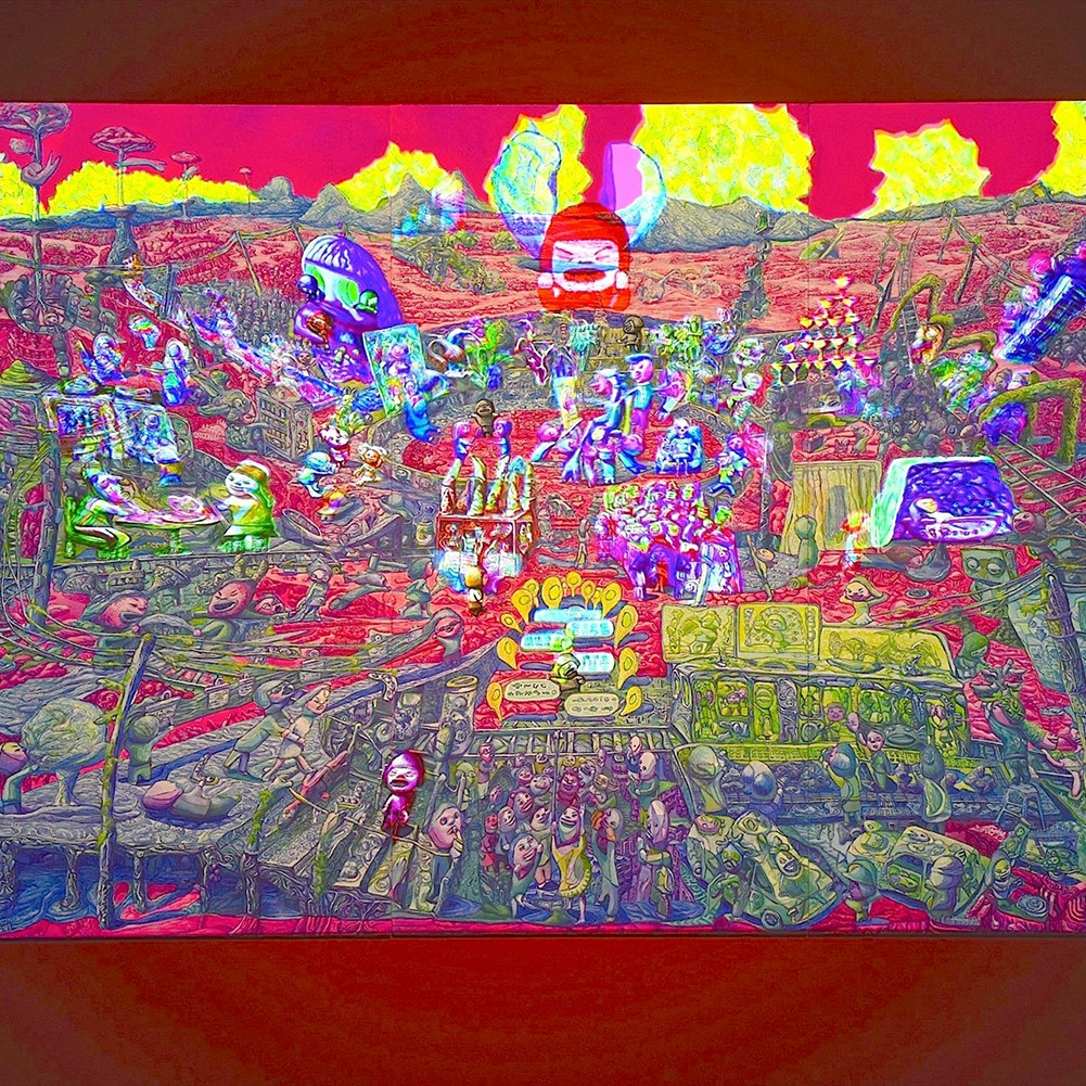また照沼は、世界を見渡すことを望む男の子「ミエテルノゾム君」と、現実が見えすぎることを嫌悪する女の子「ミエナイノゾミちゃん」の世界を、幅7メートルにおよぶ絵画やアニメーション作品で表現。大勢の人の協力を得て行う「引き興し」などで知られる加藤は、ネイティブアメリカンの居留地で行ったプロジェクトを元にインスタレーションを展開する。