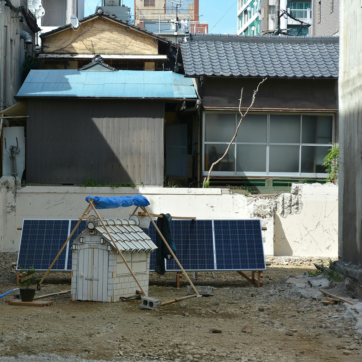 そして、発泡スチロール製の家を背負いながら各地を歩くことで公と私の関係を考察してきた村上は、今回新たに「広告看板の家プロジェクト」を実施。会期中には館内にある本展の看板を住居とし、滞在制作を行う。