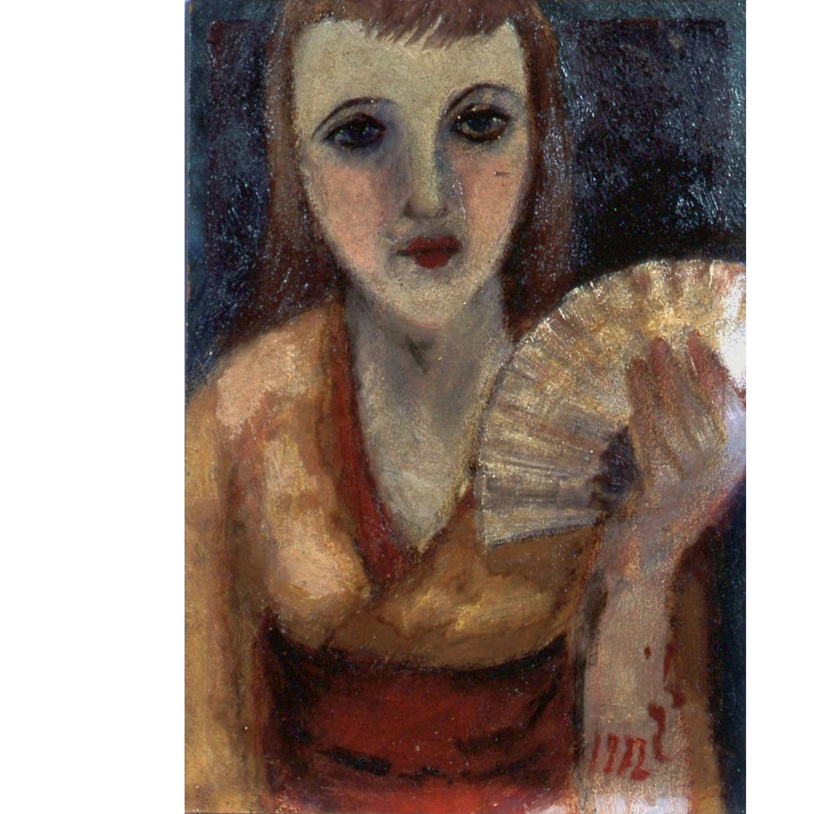 またとくに注目したいのは、夢二が長く夢見た末、晩年に実現した欧米旅行中に描かれた作品の数々。夢二はアメリカに1年滞在した後ドイツを拠点にヨーロッパ各地を巡遊し、結婚することまで考えたという少女・ナズモや和服姿の女性、ナチスに迫害されたユダヤ人と思しき女性など、異国の女性たちを多く描いた。なかでもウィーンで制作された《扇をもつ女》(1932-33)は、稀少な油彩作品だ。