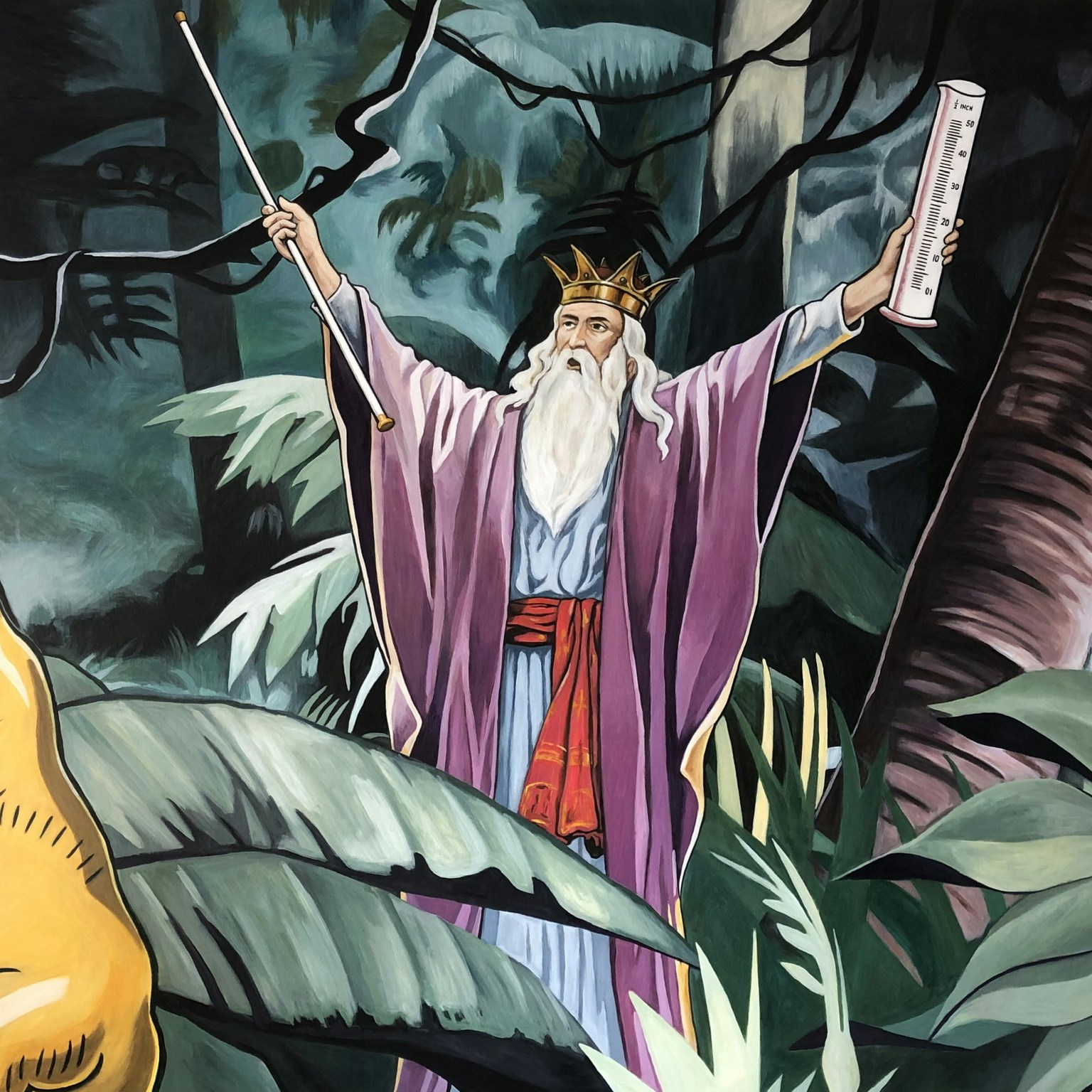 本展は新作を中心に構成。150号の大型作品を中心に、60年代の社会事象をとらえた作品や、かねてよりユアサが擬態を続けてきた架空の画家「ユアサエボシ」(1924~87)の個人的体験に焦点を当てた作品などが並ぶ。