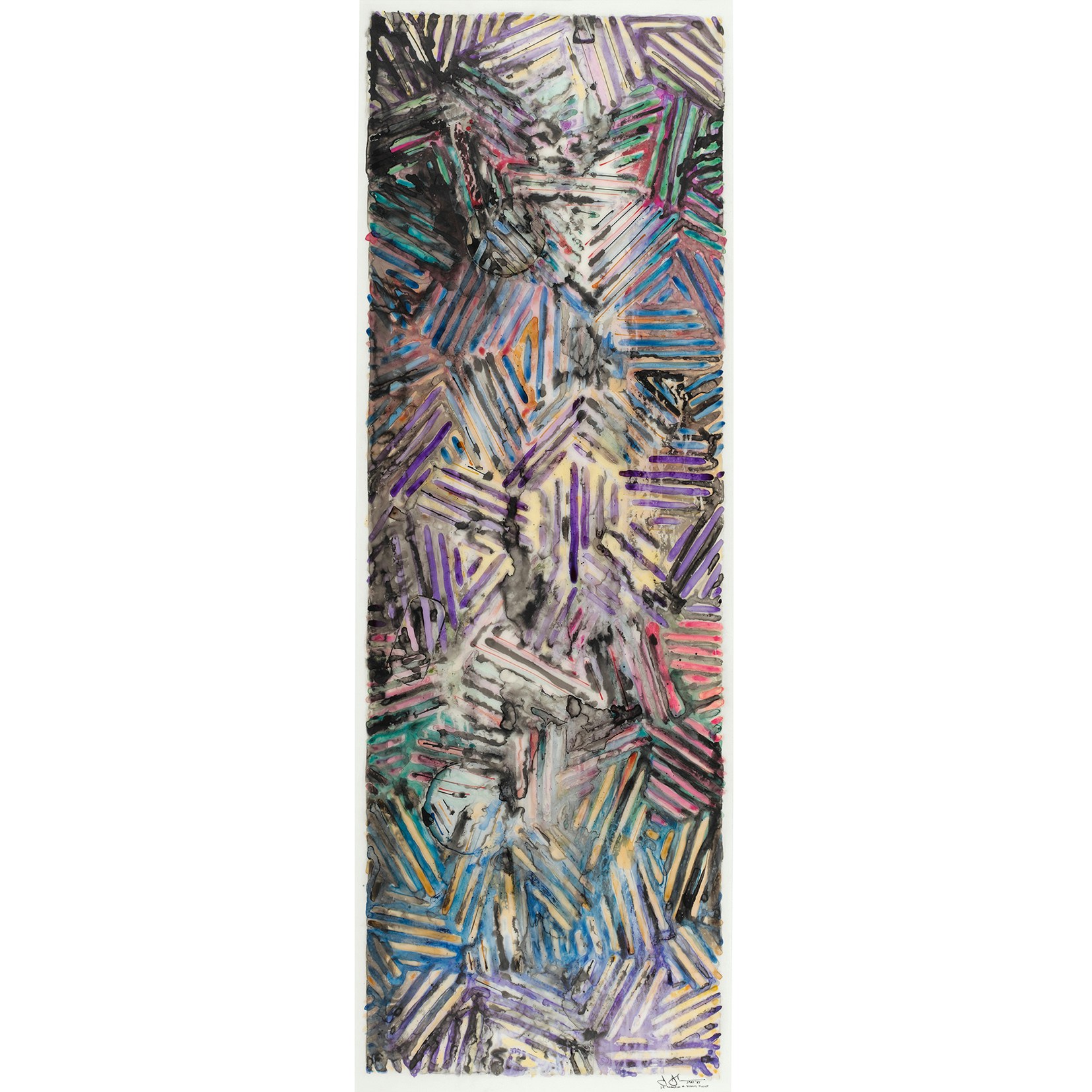 同シリーズは24作品すべてを通して、グリッド状に区分されたクロスハッチングの画面をもとに展開。ジョーンズはグリッドごとに振られた番号を元に回転、鏡像、トリミング、反復の効果を用いてバリエーションを生み出している。本展では、表面のテクスチャーと絶妙な色使いによるシリーズ最初の版画作品である1979年のリトグラフも展示される。
