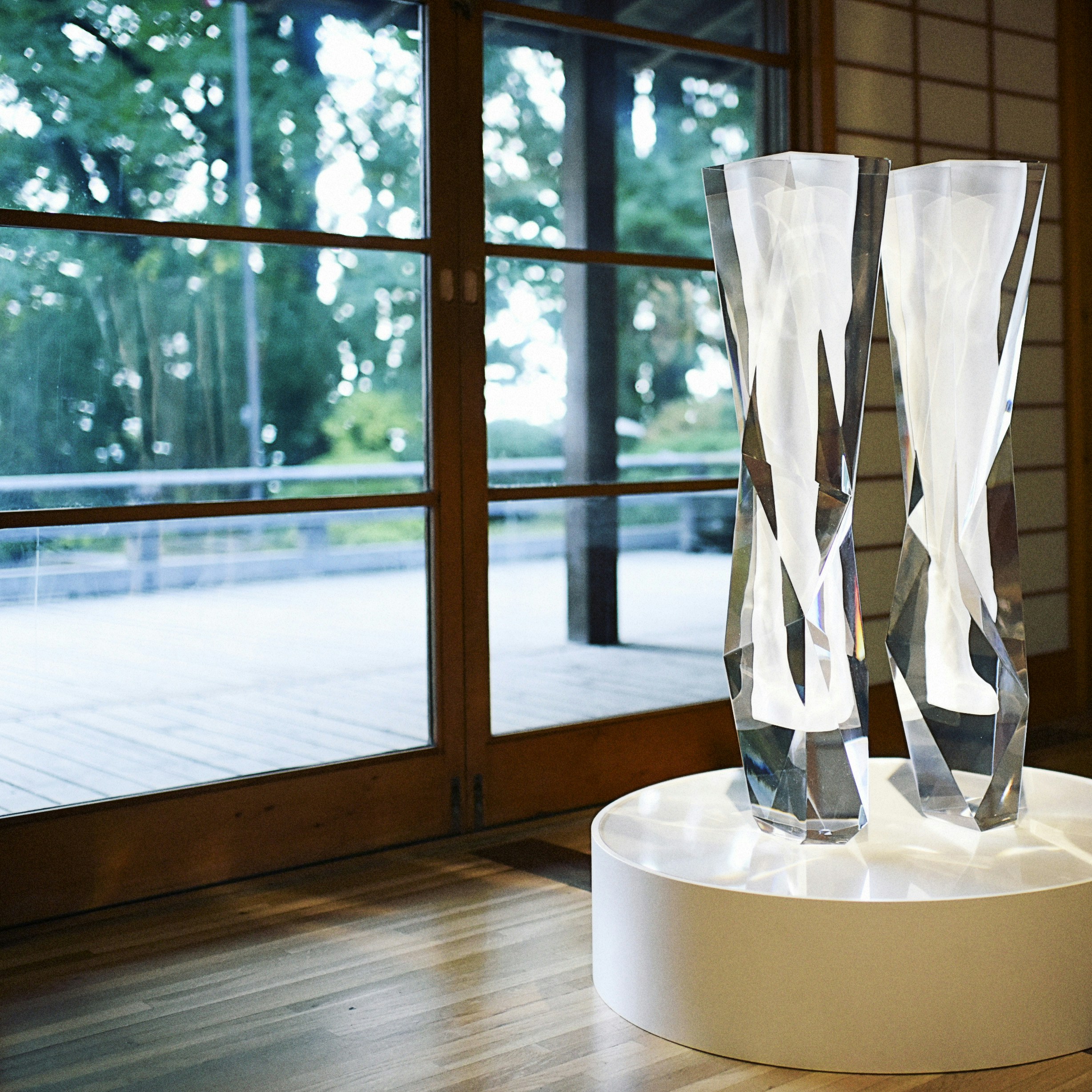 本展では、庭園内にあるパビリオンギャラリーとタナベギャラリーの2ヶ所で、50点以上の作品を展示。舘鼻の代表作である、花魁の高下駄から着想を得た「ヒールレスシューズ」から、花魁のかんざしをモチーフとした「ヘアピン」シリーズ、近年精力的に取り組んでいるペインティングのシリーズなどを展覧。これらに加え、日本独特の香文化から着想を得た最新作「ウッドカッツ」シリーズまでを網羅し、舘鼻の10年間の軌跡を追う構成となっている。