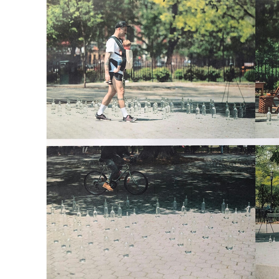 ニューヨークで行われた「Someone’s public and private / Something’s public and private」は、公園に存在する様々な関係性のあり方を、作品を介して自由かつ能動的に体験するためのプロジェクト。公園には蓮沼の体重分の水が入ったボトルとインストラクションがあり、参加者はその指示をもとにボトルを動かし、持ち帰ることができる。