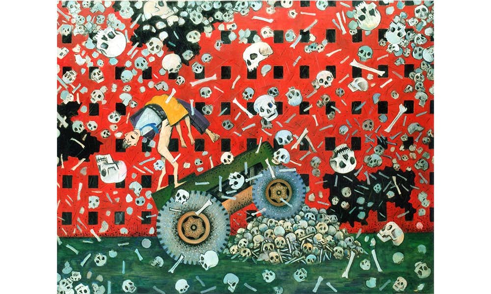 石井茂雄 暴力シリーズ 浮遊する骸骨 1956頃 キャンバスに油彩 91x 117cm