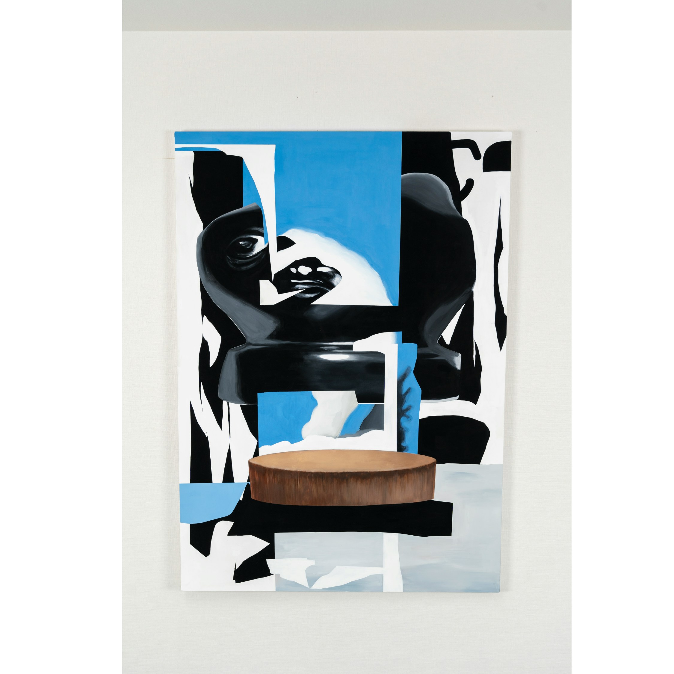 ⼭崎由紀⼦は、コンピューター上で制作したコラージュをもとにペインティングを制作し、特徴的な画⾯構成をつくり出す。