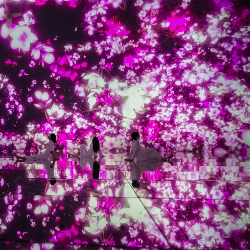 アートコレクティブ・チームラボの作品を体感できる、東京・豊洲の「チームラボプラネッツ TOKYO DMM」。その館内作品ふたつのビジュアルが、2020年3月1日〜4月30日の期間限定で桜の花になる。