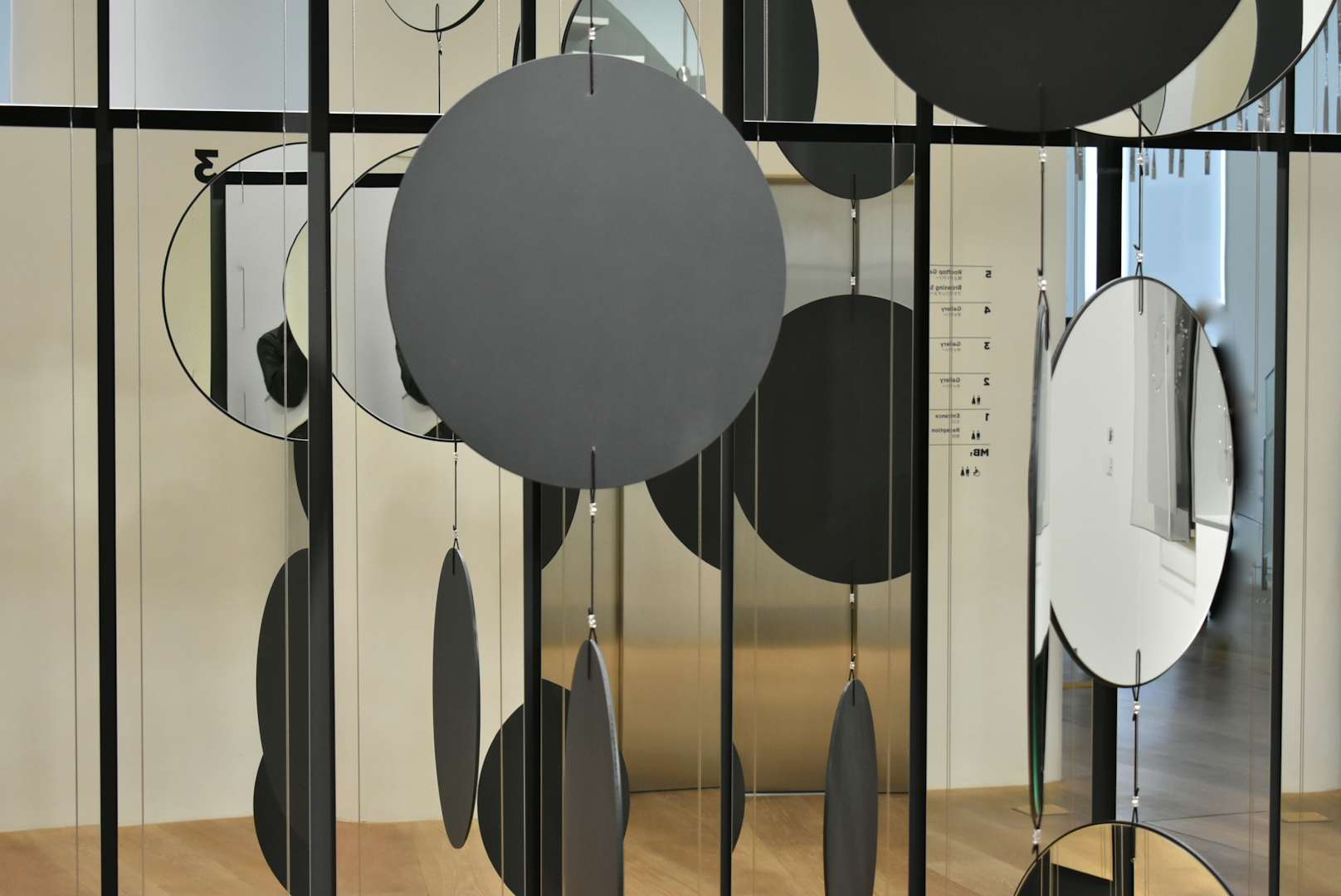 本展に出品されているクリスチャン・メーゲルトの《鏡の壁》(1961/2020)や《12枚の鏡のモービル》(1964/2020)も鏡を使用した環境型の作品。《無限なる天国への憧れ》と鑑賞体験を比較することで、新たな発見があるかもしれない。