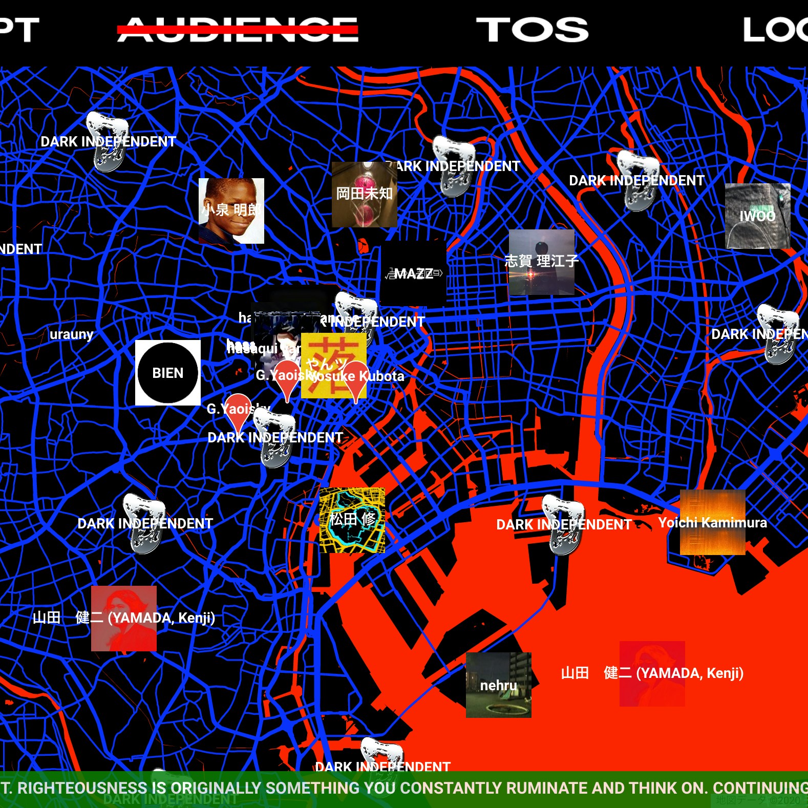「ダークアンデパンダン」と題された本展は、卯城竜太(Chim↑Pom)、キュンチョメ、松田修、涌井智仁らによって主催されたもので、誰もがアクセスできるウェブサイトと、主催者によってキュレーションされた観客のみが観覧できるリアルな場での展覧会で構成。