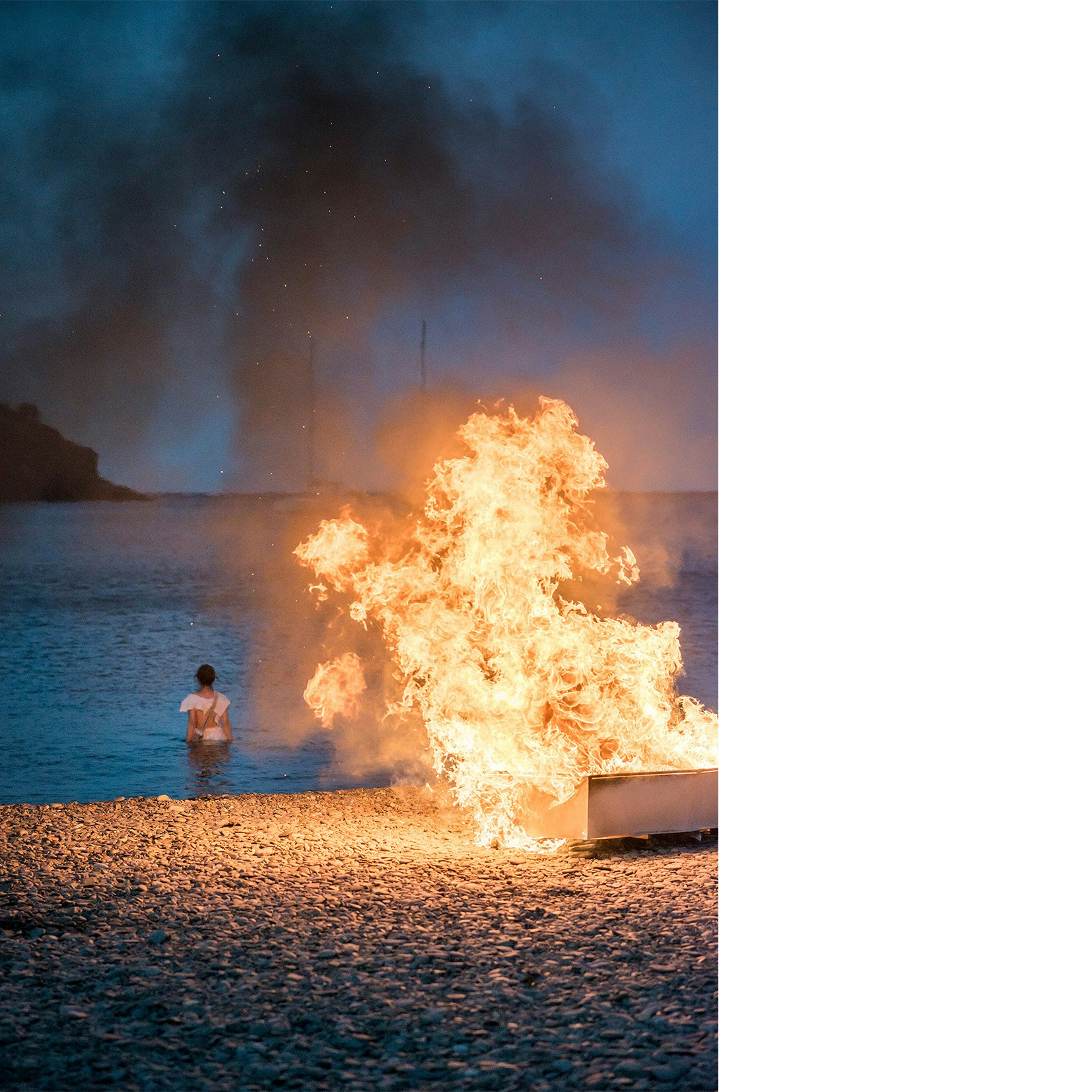 柳井信乃は、ナチス・ドイツを追われて亡命したヴァルター・ベンヤミンの道筋を、たったひとり聖火を持ってたどり直す《Blue Passages》(2016)を出展。スポーツの機能と政治・芸術の関係を考える章では、シャルル・フレジェの「RIKISHI」シリーズや、横浜トリエンナーレでも話題となったクリスチャン・ヤンコフスキーの《重量級の歴史》(2013)を展示する。