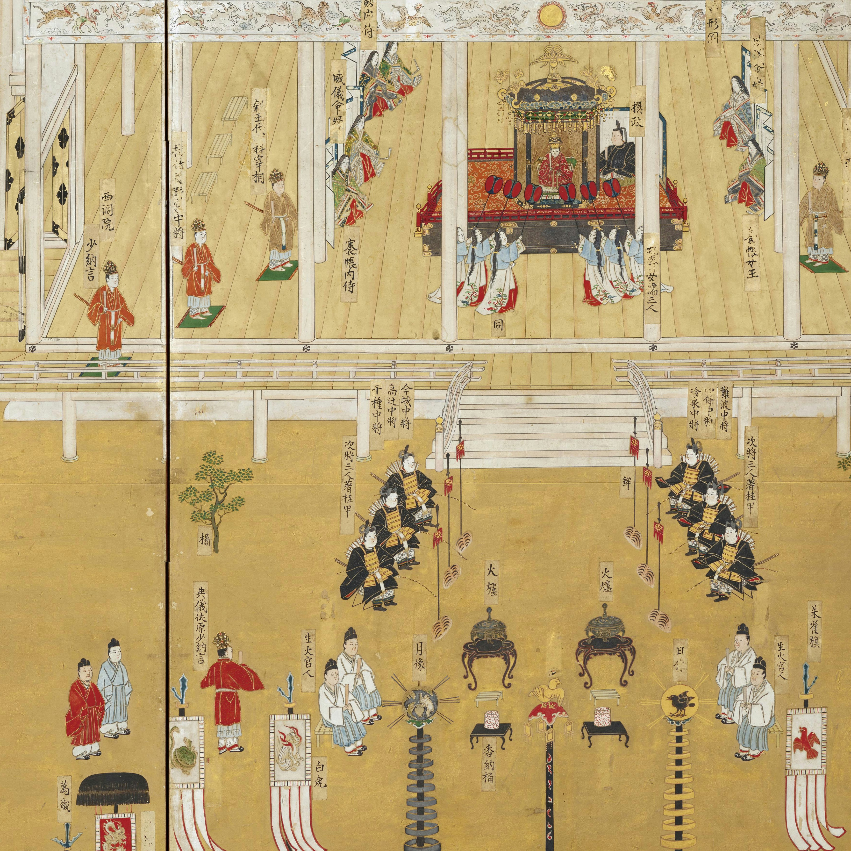 また本展では『万葉集』『和漢朗詠集』など古筆の名品から、漢字から万葉仮名へ、そしてかな文字へと深化していく和漢の交わりをたどるほか、天皇の姿と風雅を伝える肖像や日記も紹介。加えて、「藤壺」の別名でも知られる京都御所・飛香舎を飾る襖絵と調度から、そのしつらいを100年以上の時を超えて再現する。