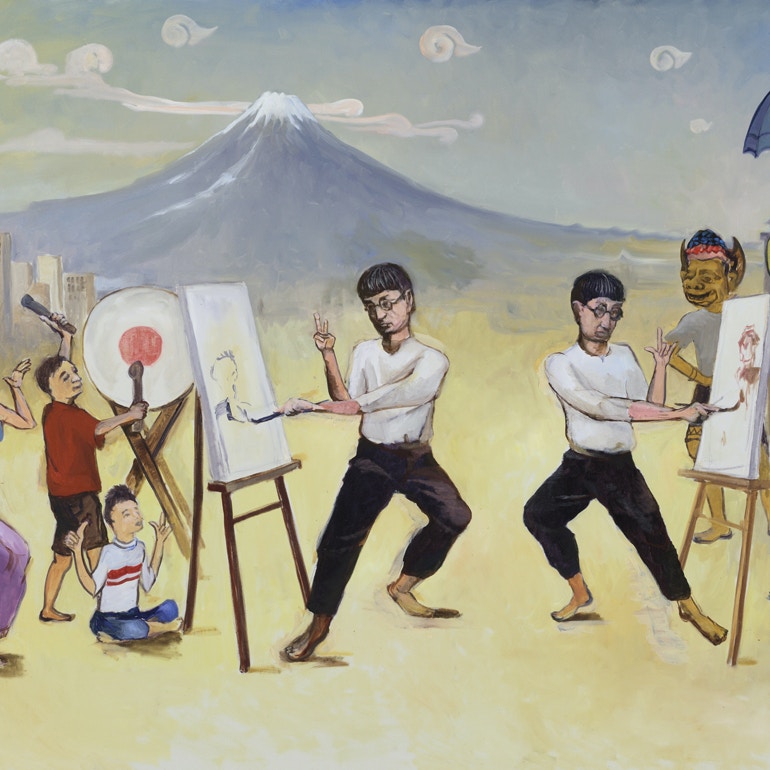 近年、グローバルに活躍した近現代の人物を題材に、事実とフィクションを交えて絵画、映像、音楽で構成される「帰って来た」シリーズに取り組む小沢。同シリーズではこれまで野口英世、藤田嗣治、岡倉天心などに注目し、世界各地に取材に訪れて現地のアーティストたちと共同制作を行ってきた。