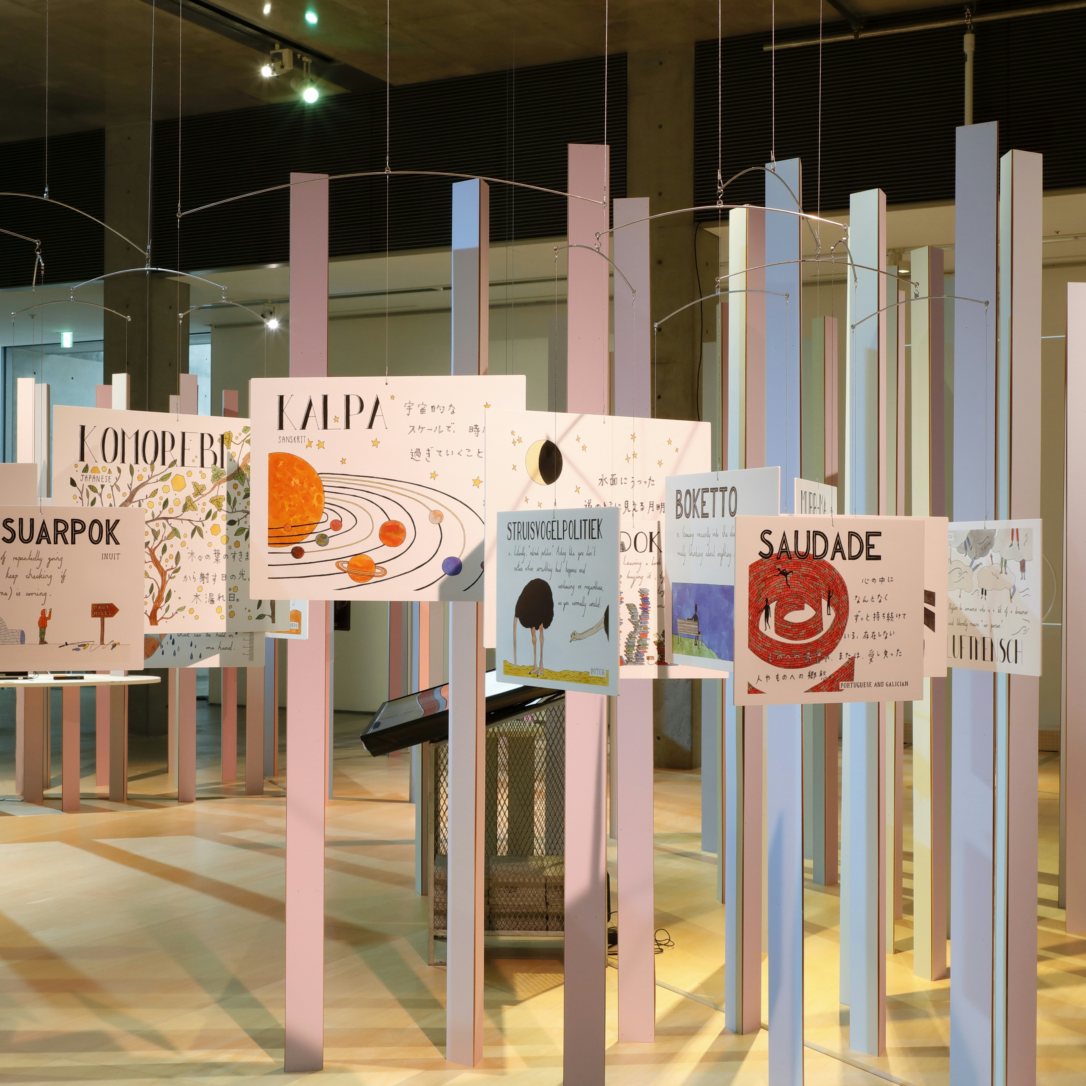 本展では、様々な分野から集まった21作品を、「ことばの海を泳ぐ」「伝えかたをさぐる」「体でつたえる」「文化がまざる」「昔とすごす」「モノとのあいだ」「異種とむきあう」の7つのゾーンに分けて構成。