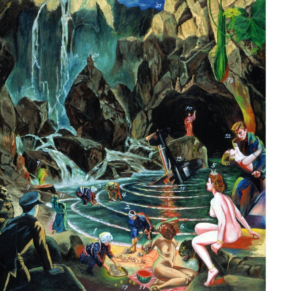 横尾の作品には、幼少時の記憶や自伝的なエピソードをモティーフとしたものが数多くあり、また近年の作品には、自身の体験や夢のなかで見た情景もしばしば登場している。その背後に存在するリソースは、本展のキーワードのひとつである「原郷(GENKYO)」だ。