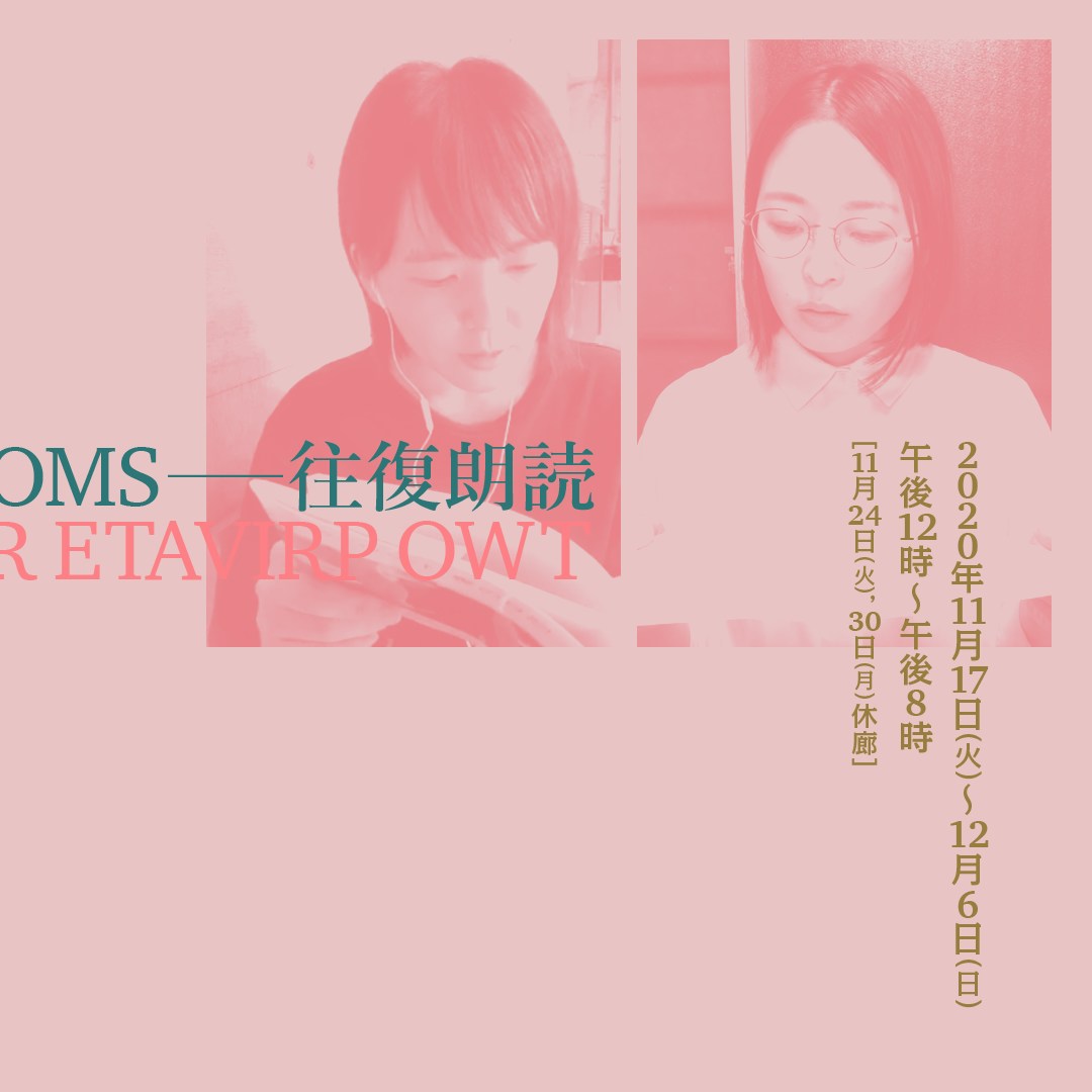 今年4月20日から毎日、Twitter上で「往復朗読」を行っているアーティストの青柳菜摘と佐藤朋子。この実践の意味をあらためて問い直す展覧会「TWO PRIVATE ROOMS – 往復朗読」が、東京・池袋の「コ本や honkbooks」内のオープンスペースthecaで開催されている。会期は12月6日まで。