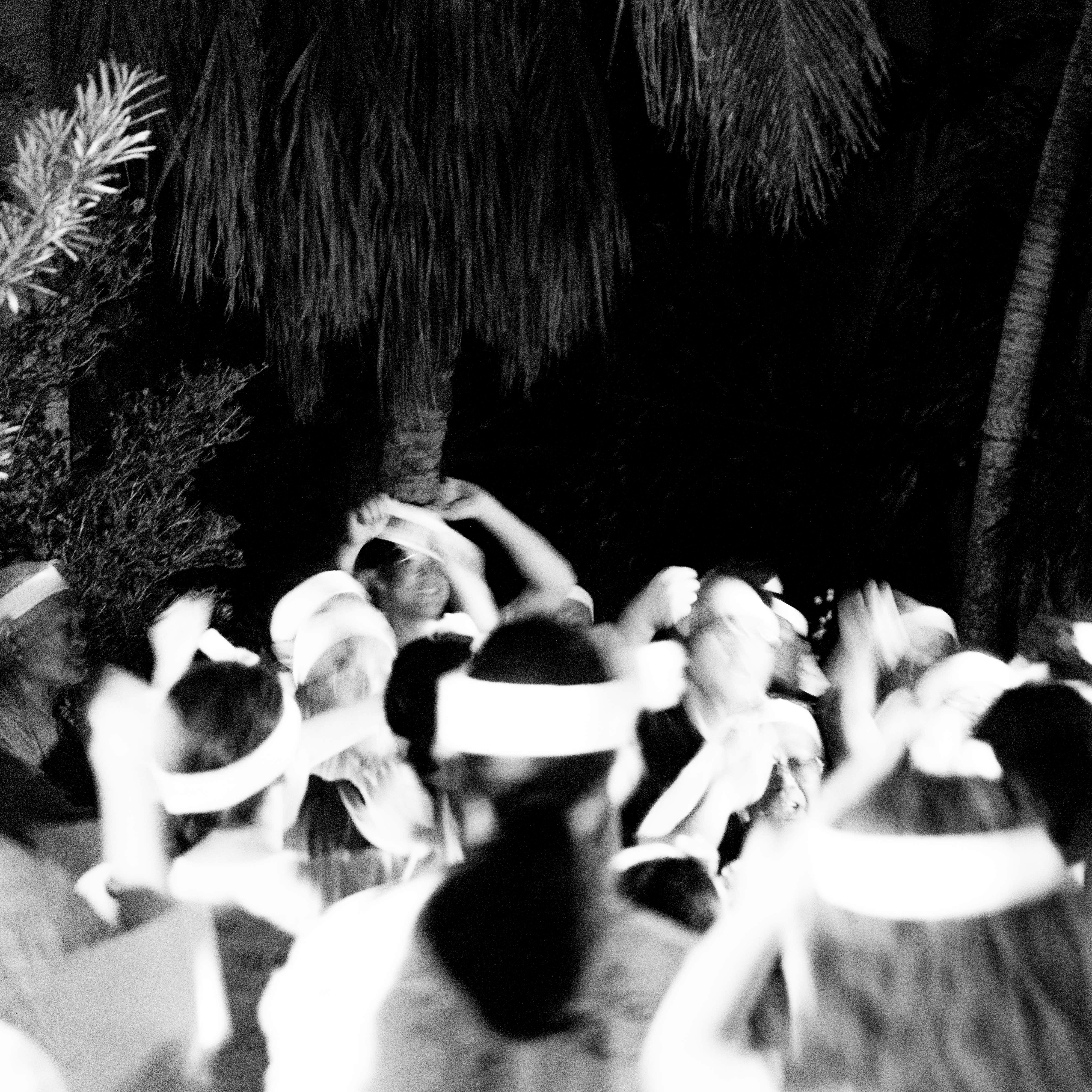本展では、各地でのフィールドワークにもとづく最新のインスタレーションを発表。展覧会タイトル「越境する祝福」は、出品作の大型インスタレーション《Blessing beyond the borders》(2019)から名付けたものだという。同作は、過去に鎖国状態を経験した日本とルーマニアという遠く離れたふたつの国の土着の祭りや風習の映し出す景色を、空間に二重螺旋状に浮かび上がらせる作品だ。作品空間にはこれまでに落合が訪れた土地の音が響き渡り、本展に合わせて、その音に会場であり自身の出身地でもある埼玉県の音を新たに組み込んだという。
