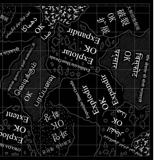 また大和田は、街中にあふれるこの注意書きから、OKが図像的に中心に来ることで、文法的な繋がりや束縛から離れ、言葉が図像的に散らばっていくような面白みも見出した。本展では、局所的に起こっていることが空間を通じて伝播し、それに先立って空間が備える離散の景気について考察した新作が並ぶ。