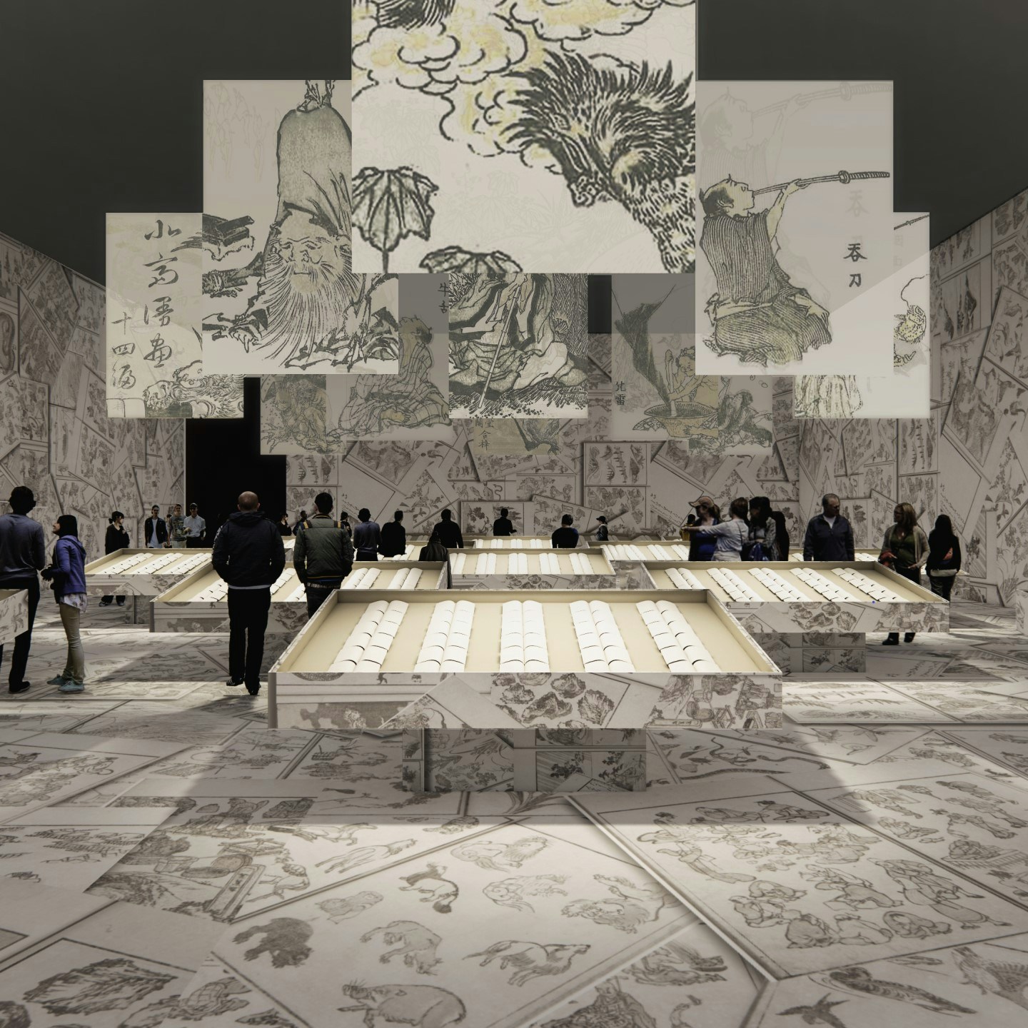 とくに《北斎漫画》は全頁を同時に展示するために約500冊を一挙に展示。「北斎漫画の森」ともいえる空間が展示室に出現するという。