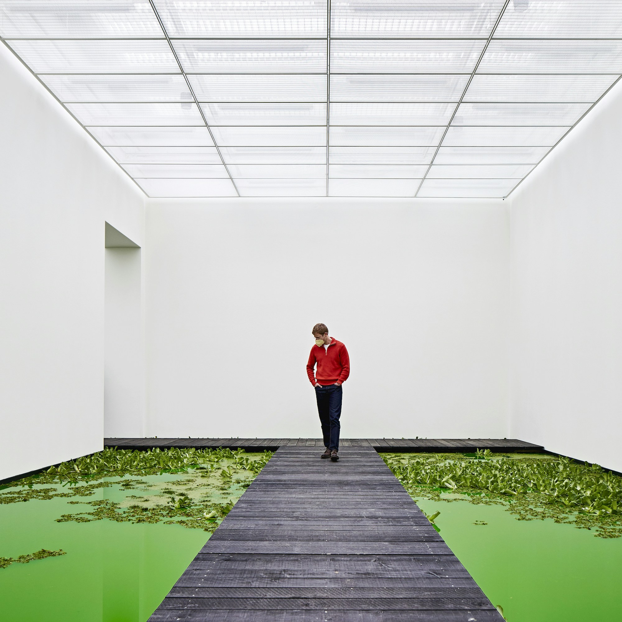 展示室のフロアが水に満たされ、水面には浮きシダやヒメスイレン、ゲットウなどの植物や浅い水域に生息する昆虫が存在する。それが、スイス・バーゼルの近郊にある私設美術館・バイエラー財団で開催中のオラファー・エリアソンの新しい個展「Life」の様子だ。