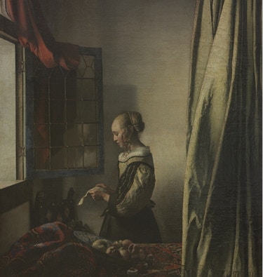 本展では、この修復過程を紹介する資料とともに、大規模な修復プロジェクトによってキューピッドが完全に姿を現した《窓辺で手紙を読む女》の当初の姿を、所蔵館であるドレスデン国立古典絵画館での披露に次いで世界初めて公開する。