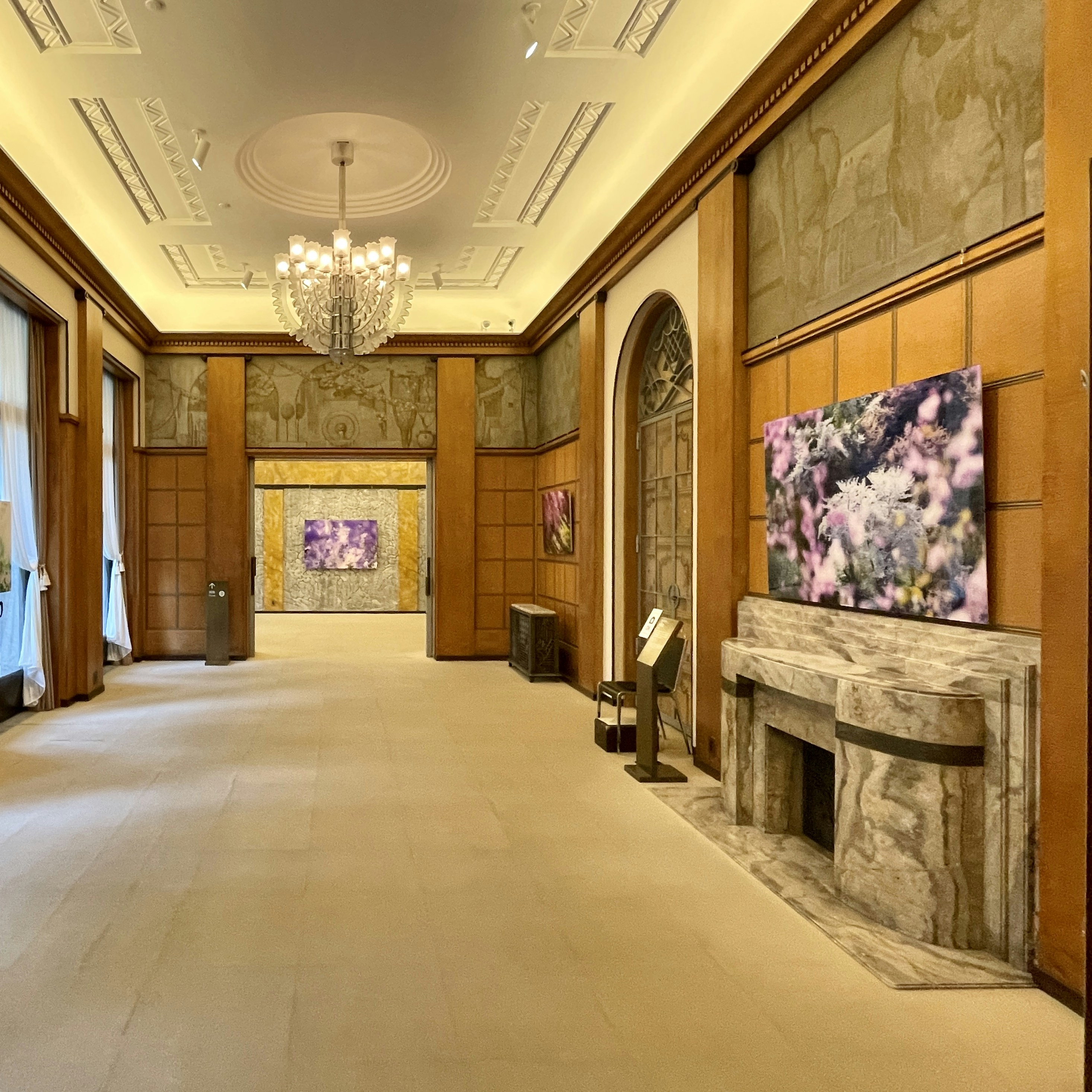 写真作品のほか、作品世界に包み込まれるような体感を味わうことができる映像インスタレーションも展示。光に満ち溢れる蜷川の作品と、重要文化財に指定されている同館のアール・デコ様式の装飾との共演を楽しむことができる。