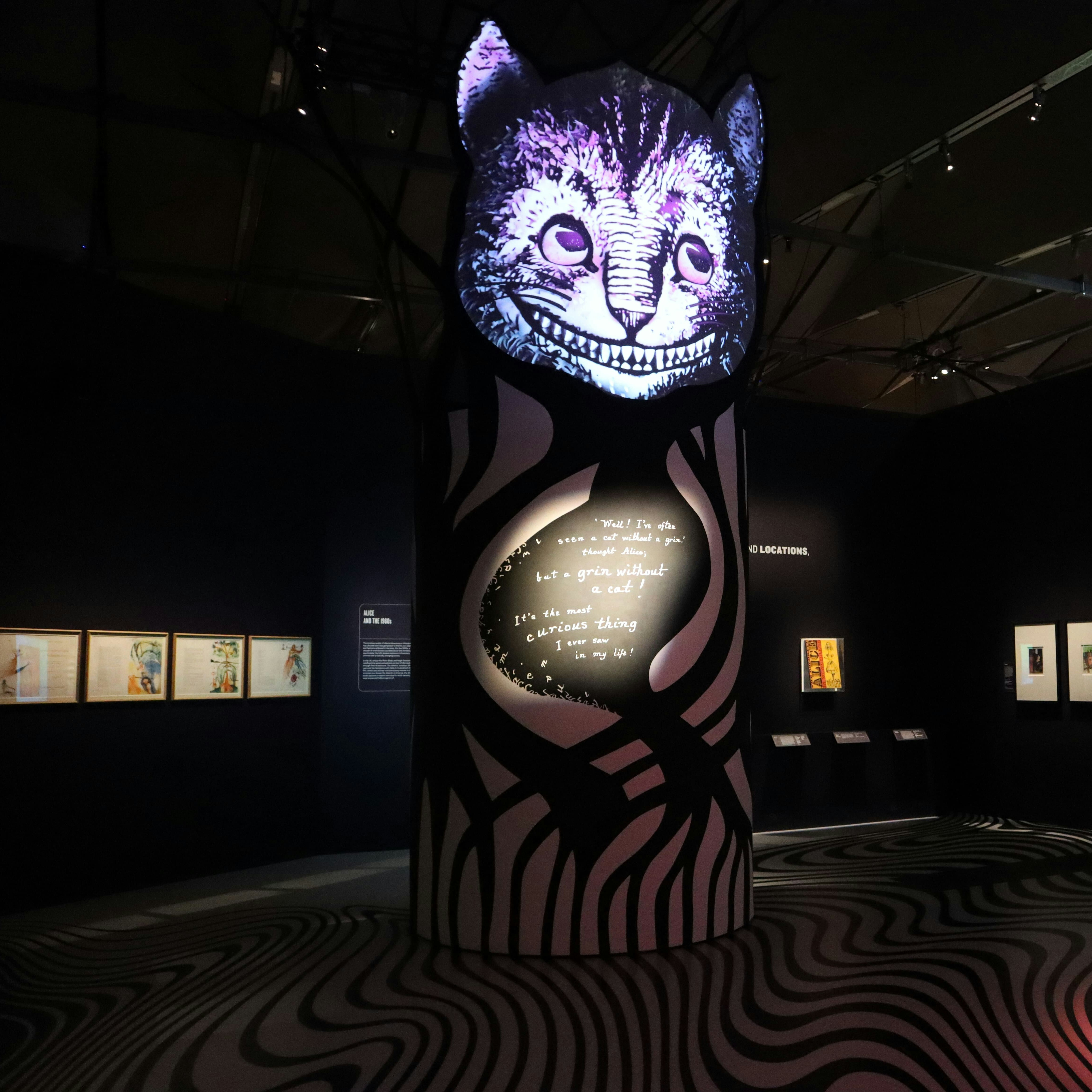 Alice Curiouser and Curiouser, May 2021, Victoria and Albert Museum Installation Image, Cheshire Cat created by Victoria and Albert Museum, Alan Farlie, Tom Piper, Luke Halls Studio © Victoria and Albert Museum, London
