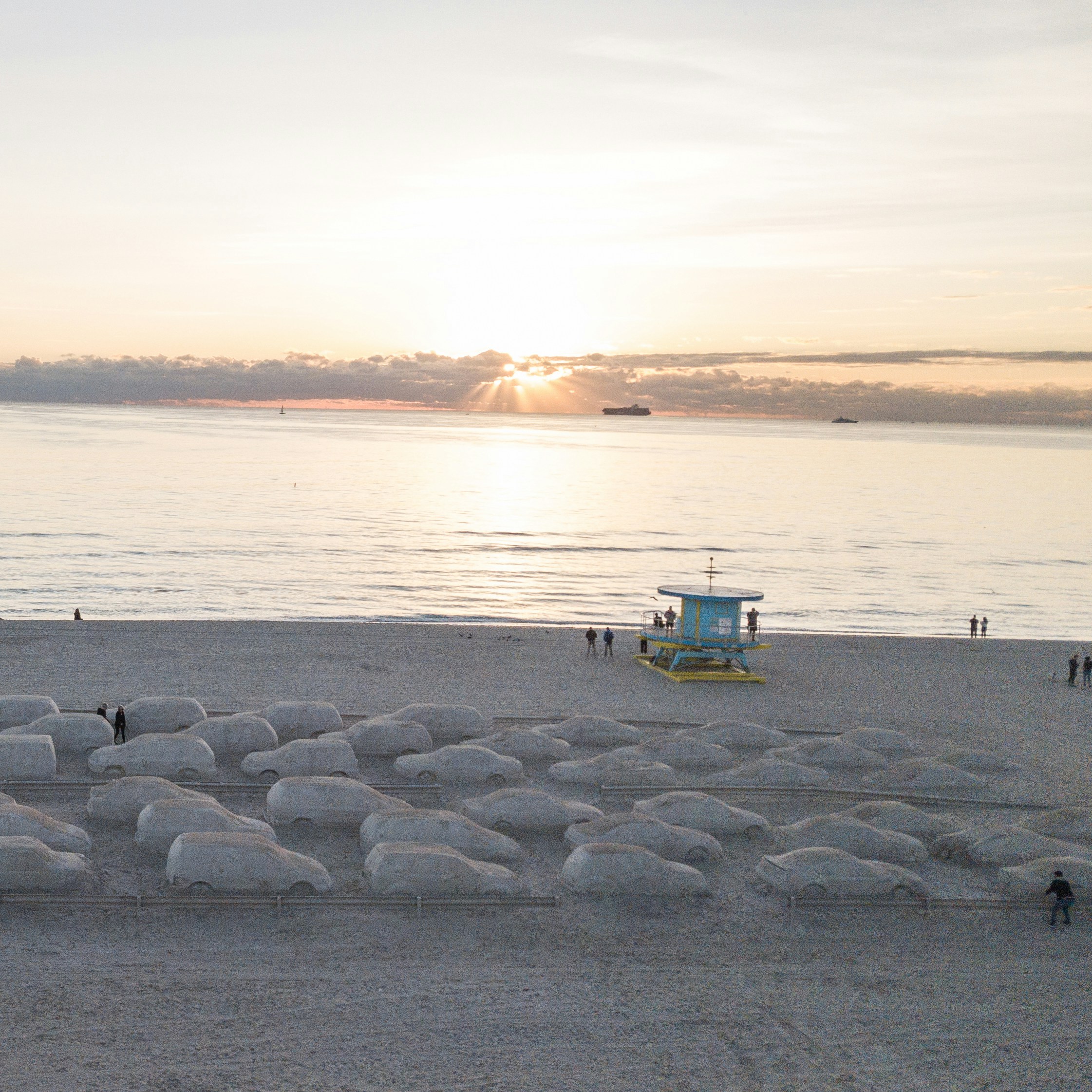 参加作家は金氏徹平(マリンスタジアム)、小林健太(マリンスタジアム) レアンドロ・エルリッヒ(ビーチ)、細倉真弓(幕張メッセ)、イナ・ジャン(幕張メッセ)。例えば金氏は、小さいものとして見慣れた平面的なイメージ世界を圧倒的な大きさをもって立体化した作品を展示。またレアンドロ・エルリッヒは温暖化や気候危機をテーマとした新作を発表。温炭素を排出しつつ渋滞する車の列を「現代」の兵馬俑と見立て、砂の自動車がやがて風化して消えてゆく遺跡のように配置される。