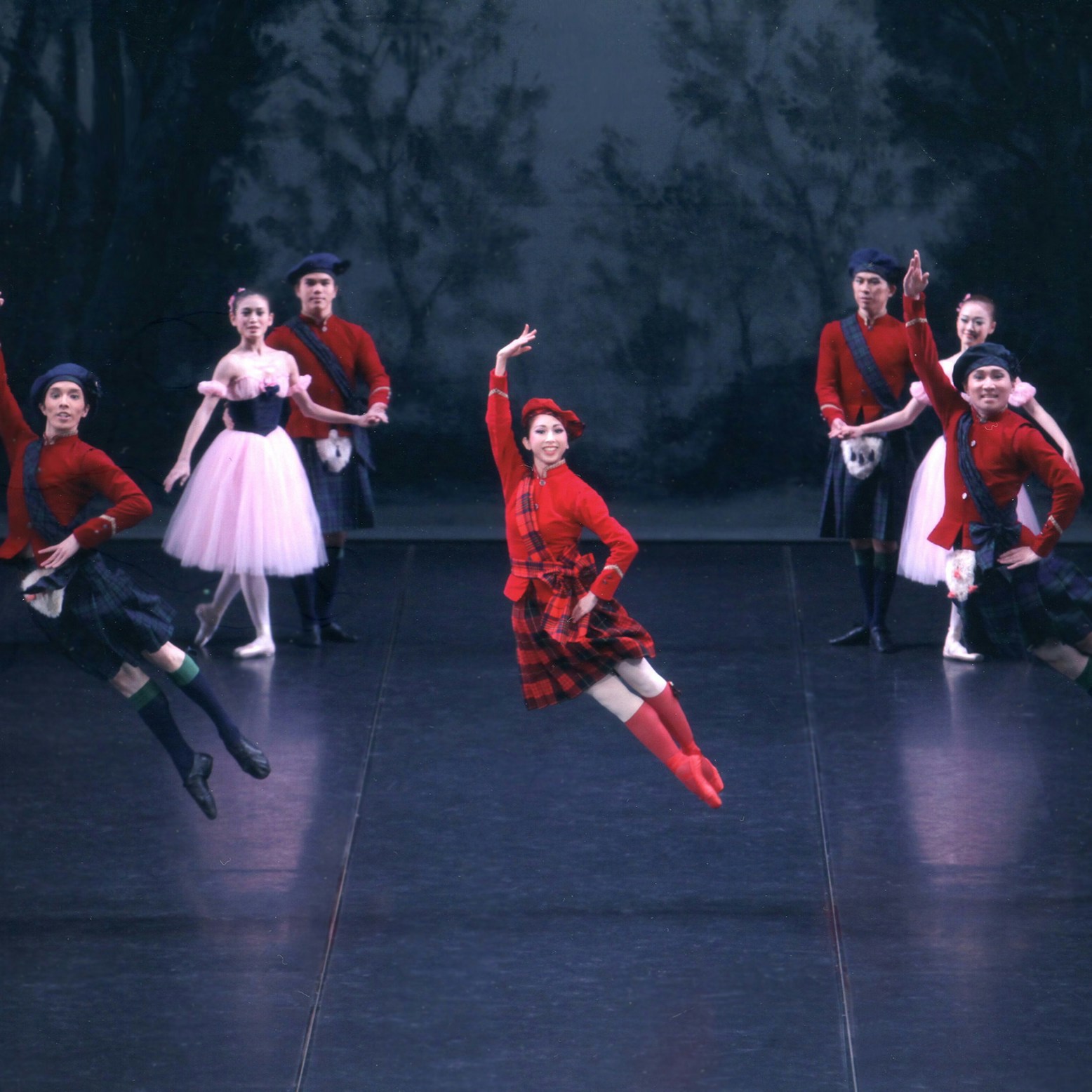 『Scotch Symphony』は「ニューヨーク・シティ・バレエ」の創設者かつ、アメリカンバレエの⽣みの親でもある振付家、ジョージ・バランシンの演⽬。「⾳符を動きにした」と形容されるリズムや軽やかなステップが特徴だ。