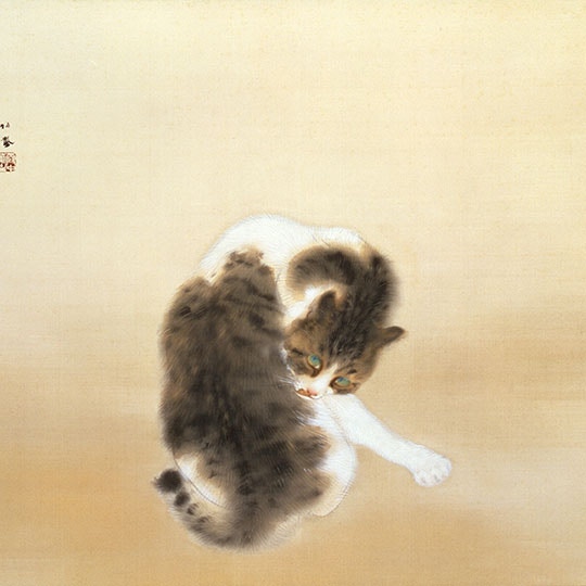 本展では、動物画の傑作にして栖鳳の代表作・重要文化財《班猫》をはじめとする同館所蔵の栖鳳作品全26点や、東京国立博物館所蔵の《松虎》(前期展示)、個人蔵の初公開作品を含む初期から晩年までの栖鳳作品が一堂に公開。動物や風景をバリエーション豊かに描き出した栖鳳芸術の変遷をたどる。