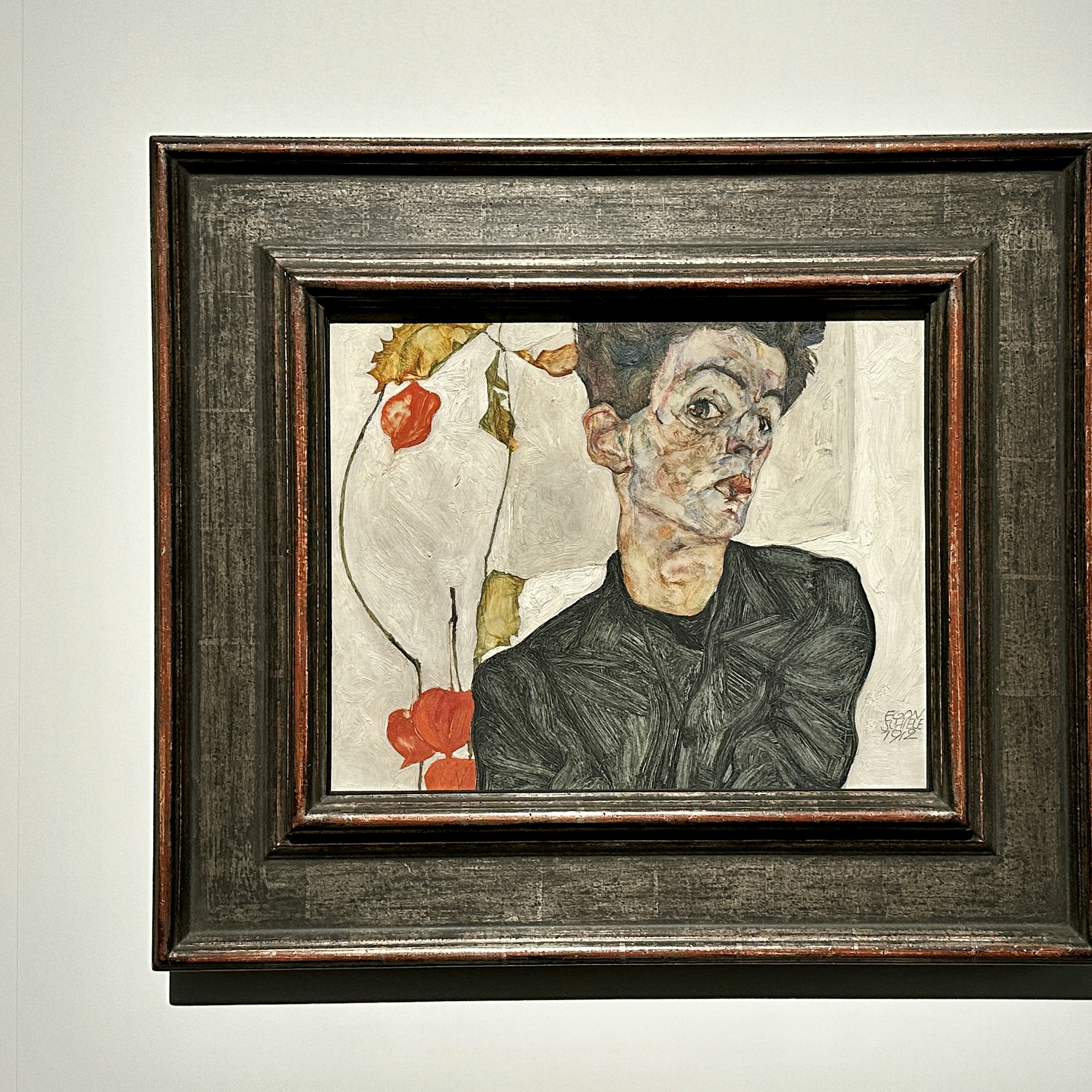 なかでも注目なのは、展覧会のビジュアルにも使われる本展のハイライト《ほおずきの実のある自画像》(1912)だろう。担当学芸員の小林は、「眼差しに画家の複雑な心境が表れている。天才画家シーレの才能が凝縮されている作品」と評する。