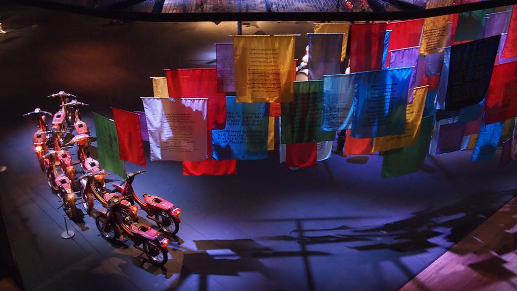 2013年 原動機のないモーターバイク、旗 サイズ可変 所蔵:森美術館、東京