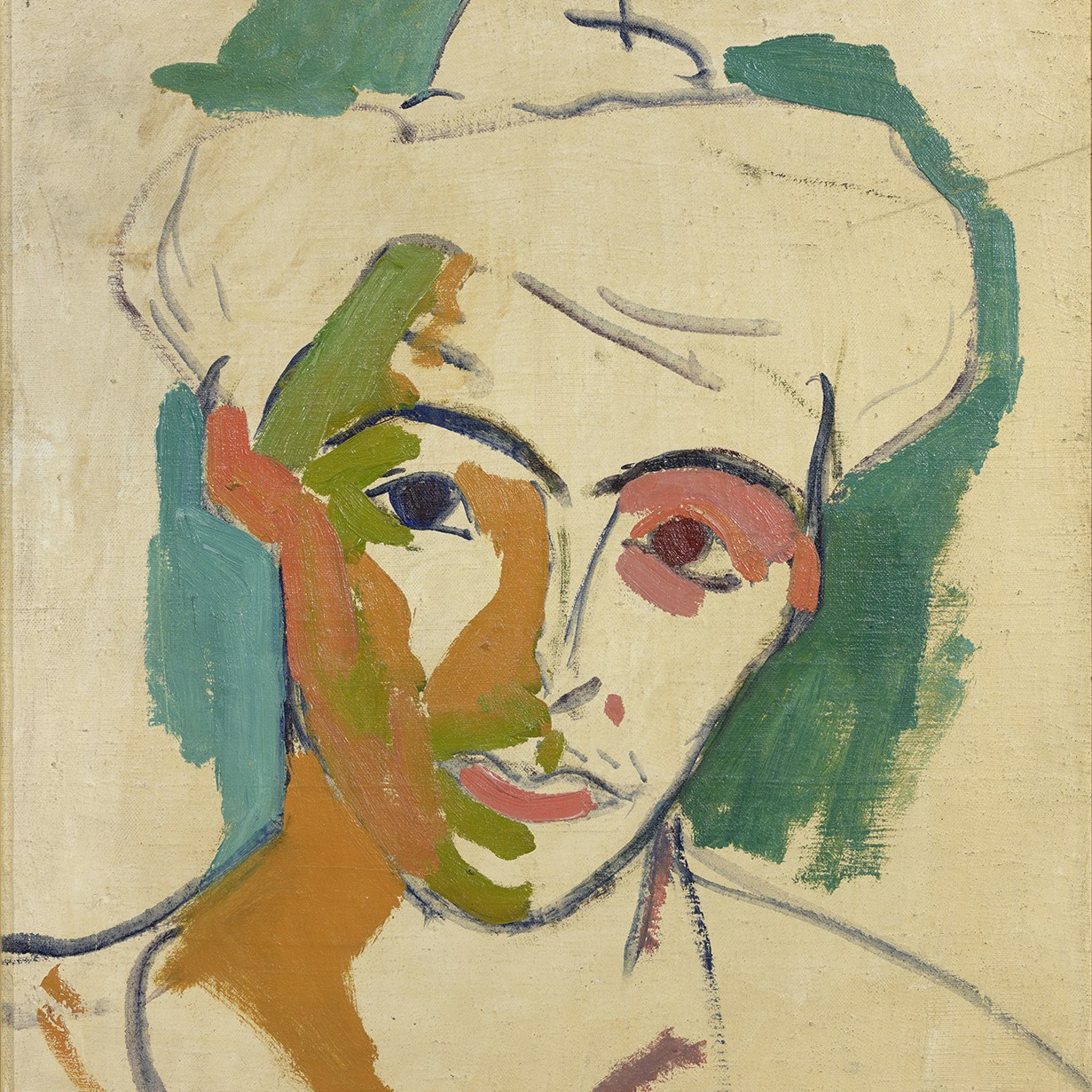 最初のセクション「色彩の道」では、マティスが「私の最初の絵画」と称した《本のある静物》(1890)をはじめ、ルーヴル美術館で古代美術と巨匠たちの模写に取り組んだ代表的な作例である《ダフィッツゾーン・デ・ヘームの「食卓」に基づく静物》(1893)、マティスの代名詞であるフォーヴィスム(野獣派)の特徴が見られる《マティス夫人の肖像》(1905)など、初期の貴重な作品が集まる。