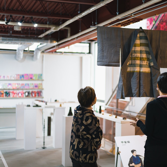 「デザイン展」では、明治・大正期ごろに現在の富士吉田周辺地域で織られていた織物「甲斐絹」を取り上げる。企画展では、現在地域内で保管されている数百点を超える資料の中から厳選された生地や羽織、当時使われていた道具を様々な視点からアーカイヴ展示する。現代では復元不可能な甲斐絹に込められた人々のメッセージを感じることができるという。