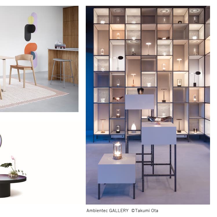 参加クリエイターは、Muuto、SANLORENZO JAPAN(MOROSO・Paola Lenti)、Ambientec 、RECONC 、h220430 Satoshi Itasaka、Denis Guidone x Y.S.M.、Gwenael Nicolas、Tokio.、編阿弥、Original Kolor Design、WASARA。