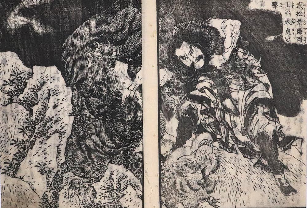 『新編水滸画伝』より、武松vs大虎 北斎館所蔵
