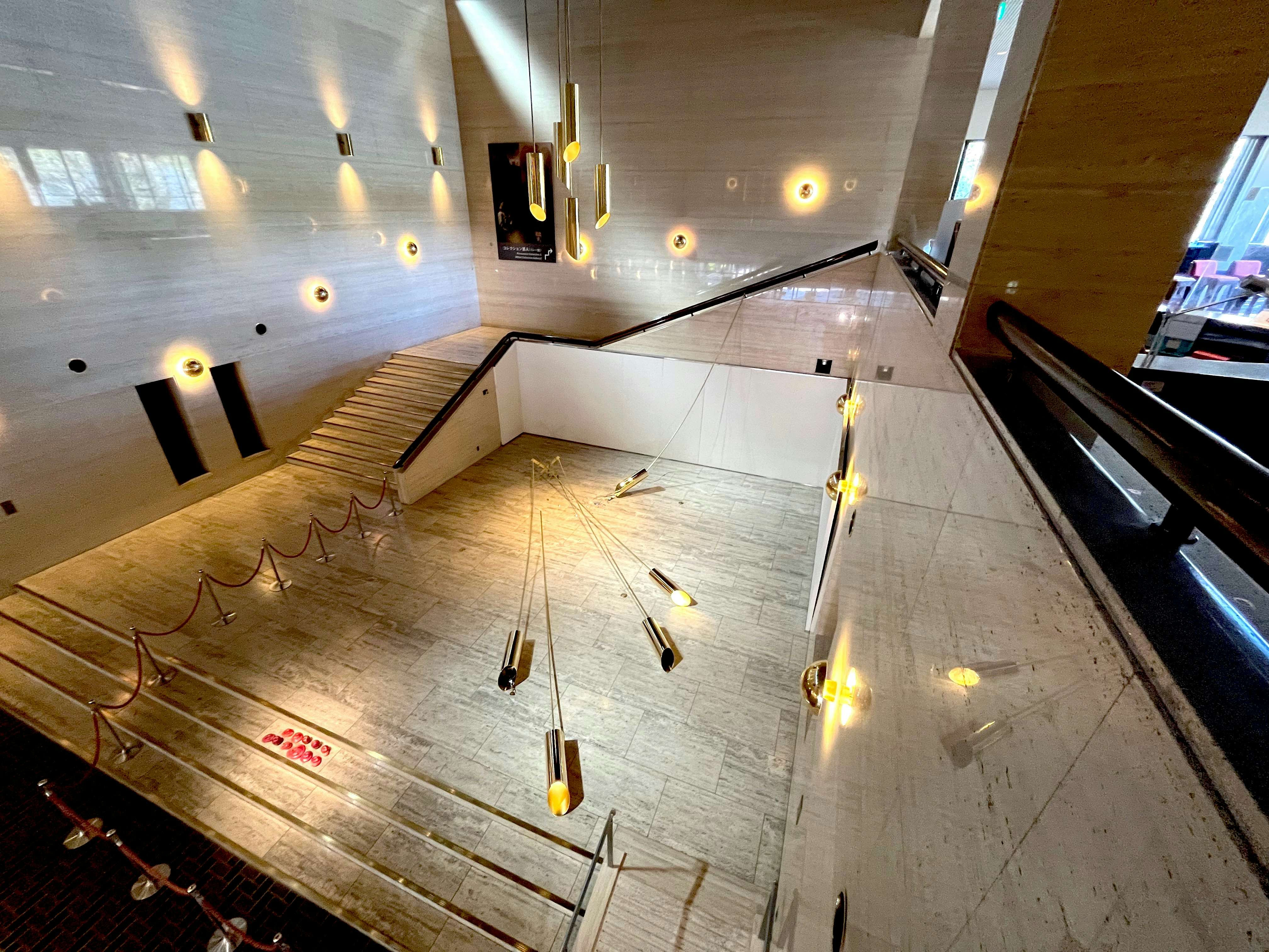 展示風景より、《まだ落ちていないほうの吊り下げ照明》と《Apple》