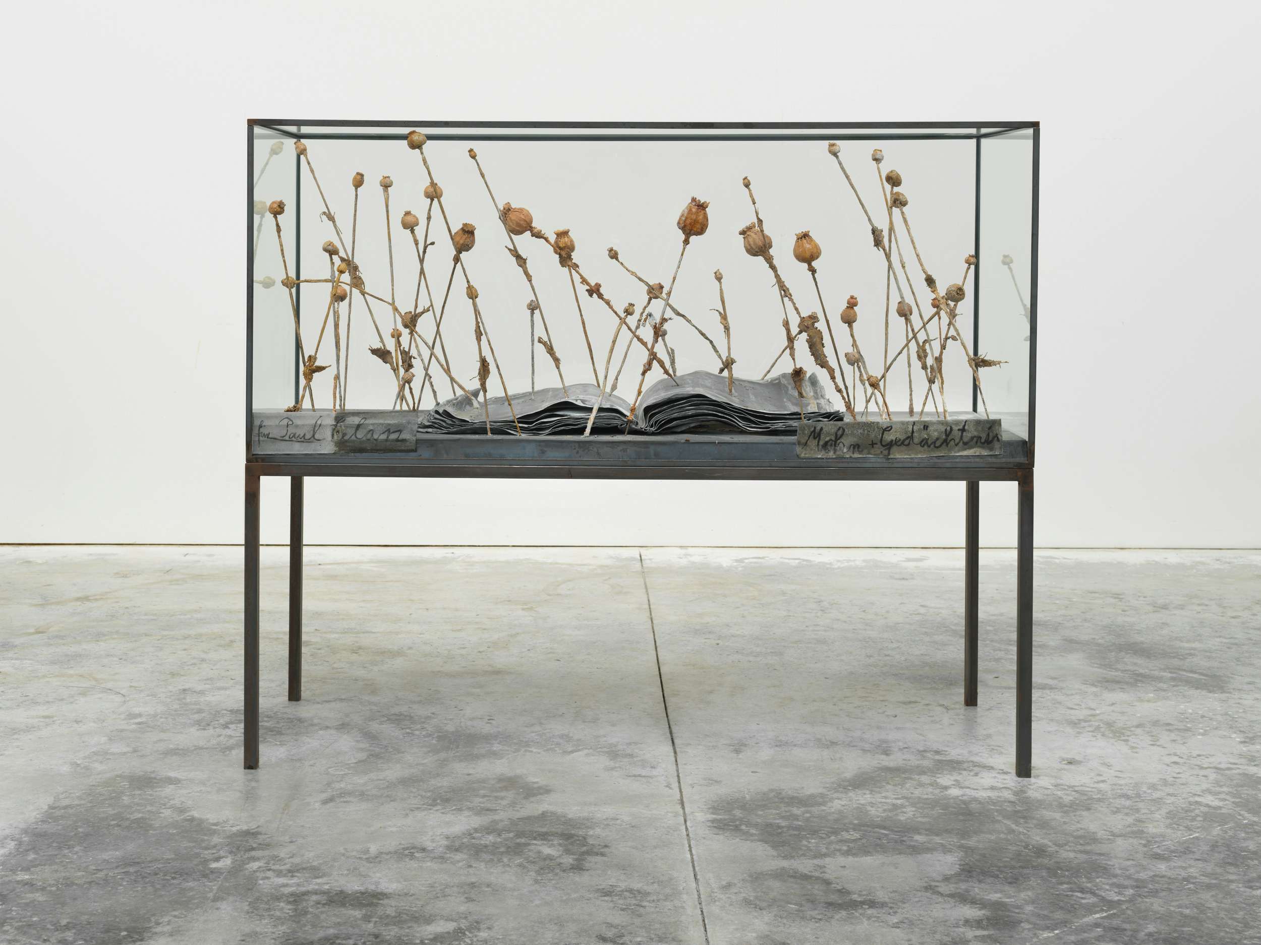 アンゼルム・キーファー 粟と記憶―パウル・ツェランのために 2014 Steel, glass, lead, resin, shellac, zinc, and charcoal 152.5×180×70cm)