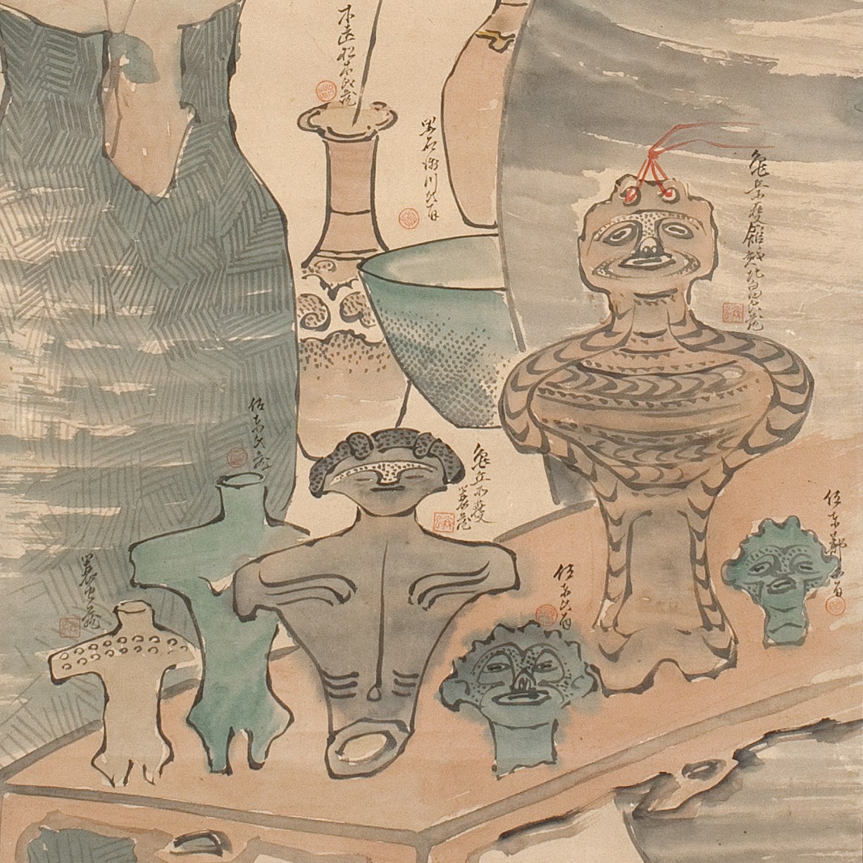 この時代は「伝統論争」といわれる「縄文(土偶)」と「弥生(ハニワ)」のどちらに日本の文化的なシンボルを託すのかという論争が建築分野を中心に起こり、弥生派として丹下健三が、縄文派として白井晟一が対抗し合った。いっぽう、美術の分野ではイサム・ノグチ、宇野三吾、建畠覚造らが陶芸や木彫でハニワをモチーフとした立体を制作。いっぽう、岡本太郎が土偶に日本の原点としての美を見出したことは有名だろう。