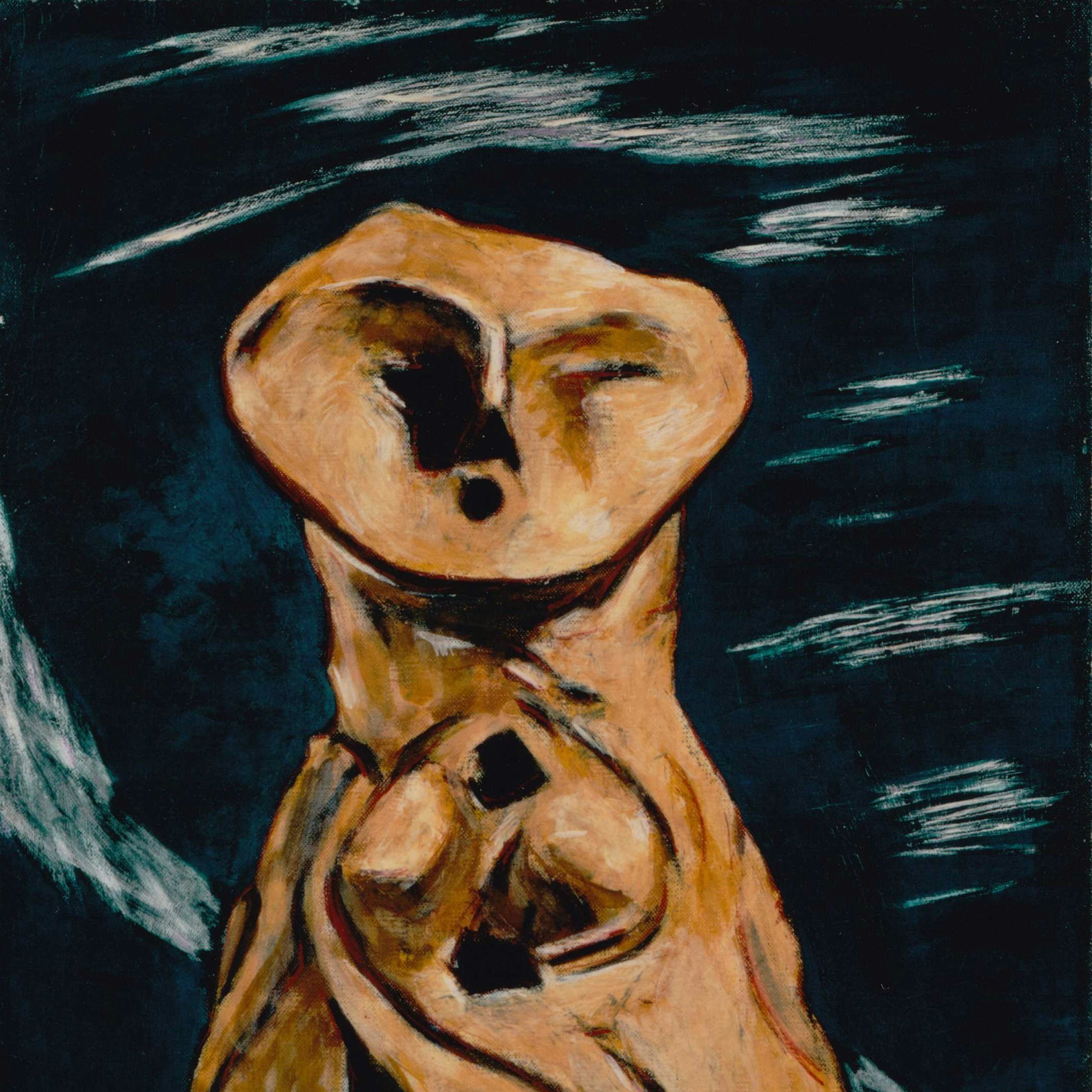 いっぽう、こうした時代においては、抽象絵画に厳しい統制がなされた。しかしながら、小野里利信(のちのオノサト・トシノブ)が円をモチーフとした抽象画に《はにわの人》(1939)と名づけ、抽象と具象のあわいで生き残ろうとするなど、ハニワは残された創造性の源泉にもなっていた。