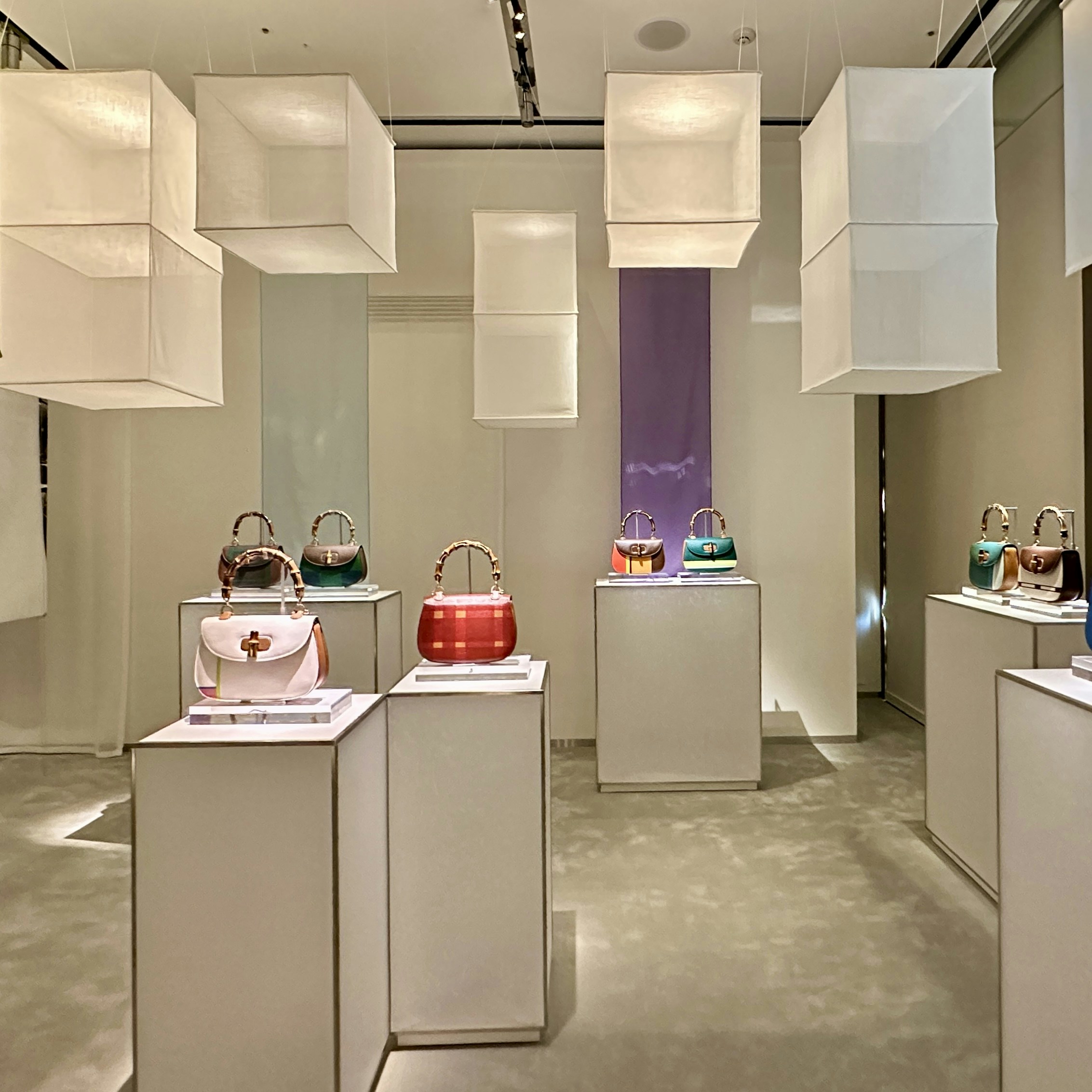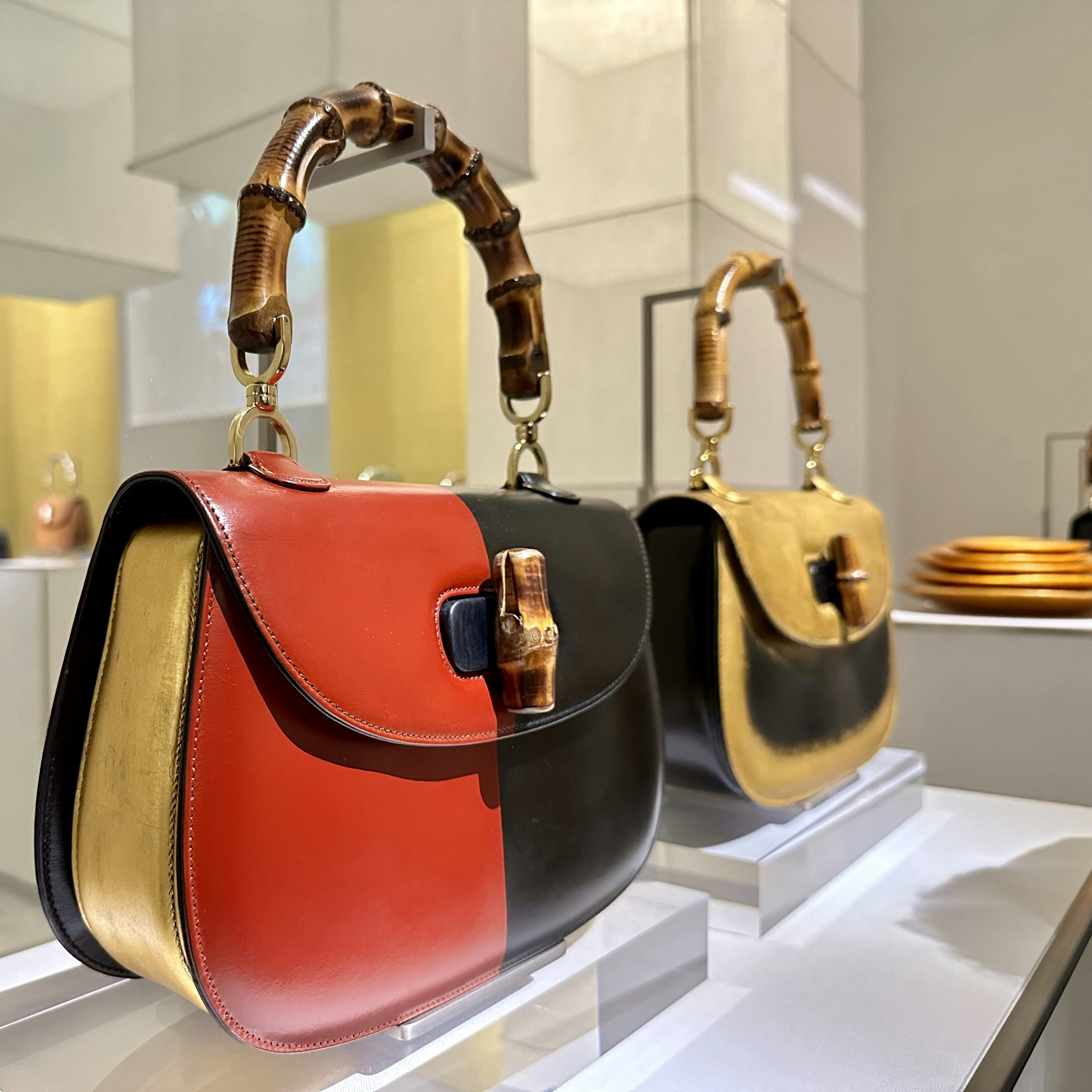 「グッチ バンブー 1947」ハンドバッグは、上質な素材を手に入れるのが困難だった戦後期のイタリアで、ブランド創設者であるグッチオ・グッチとフィレンツェのグッチの職人たちが日本の竹を加工してバッグのハンドルにしたという歴史がある。いまやバンブーハンドルのバッグはグッチのアイコンとして知られる。