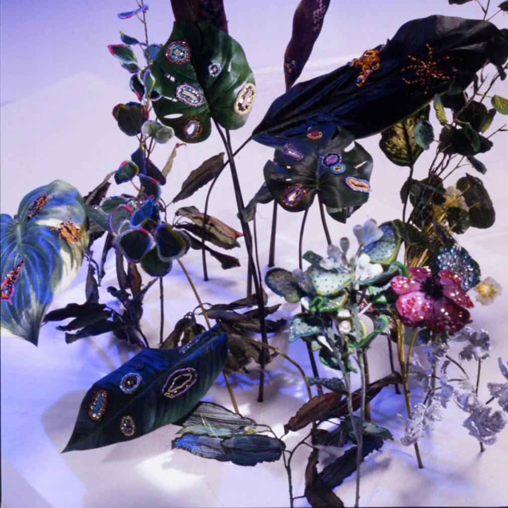 会場では、本展のために厳選された「TOKYO MONSTER」「I:I」「あめつちのうた」「Serendipity」シリーズ作品のほか、陶芸家・宮下サトシとコラボレーションした陶芸と刺繍の植物を組み合わせた⽴体作品「Dream Pod」シリーズ、日本初公開となる「Mythology」シリーズ作品など、多様な約40点が登場する。