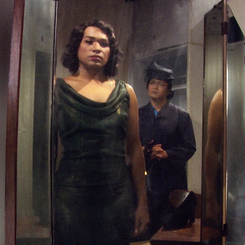 本展では、国立国際美術館が所蔵する20余名の国内外の現代美術作家の作品を通じて、こうした境界を問い直す。シンガポール出身でベルリンを拠点に活動するミン・ウォンの映像作品《ライフ・オブ・イミテーション》(2009)は、ハリウッド映画『イミテーション・オブ・ライフ』に対するオマージュとして、ジェンダーや人種問題をテーマにした作品だ。作品のなかで登場するシンガポールの多民族社会における文化的規範を、ユーモアとともに描き出し、現在のグローバル化された社会における文化的逸脱を示唆している。