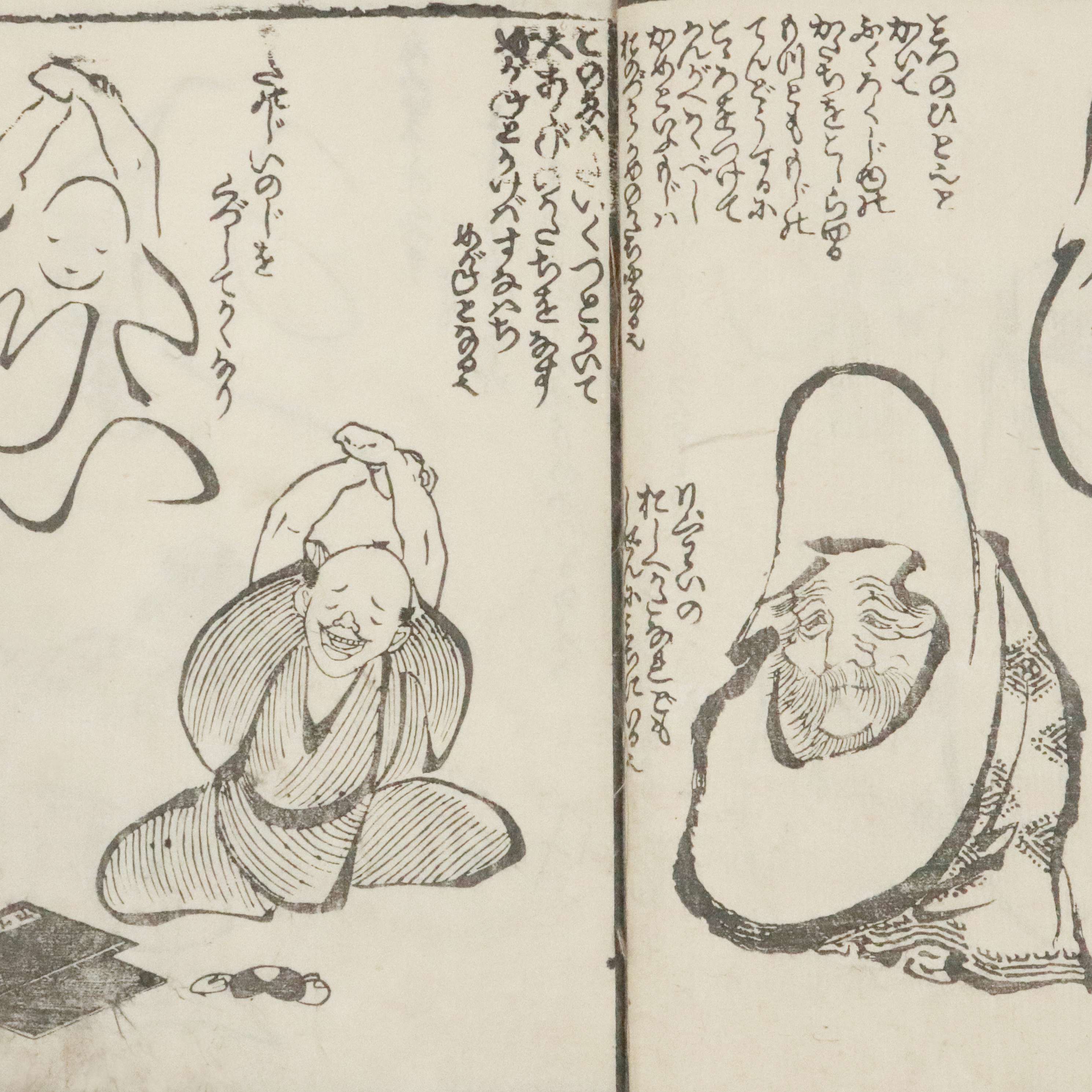 葛飾北斎は、70年にわたる長い画業のなかで、様々なジャンルに取り組んだが、とくに50歳代以降に力を注いだのが「絵手本」だ。絵手本とは、絵を学ぶ人々のために制作された参考書であり、北斎も複数の絵手本を作成した。そのなかでもっとも広く知られているのが『北斎漫画』であり、その制作においては、同時代の絵師・鍬形蕙斎の『略画式』という略画の絵⼿本が大きな影響を与えたとされる。