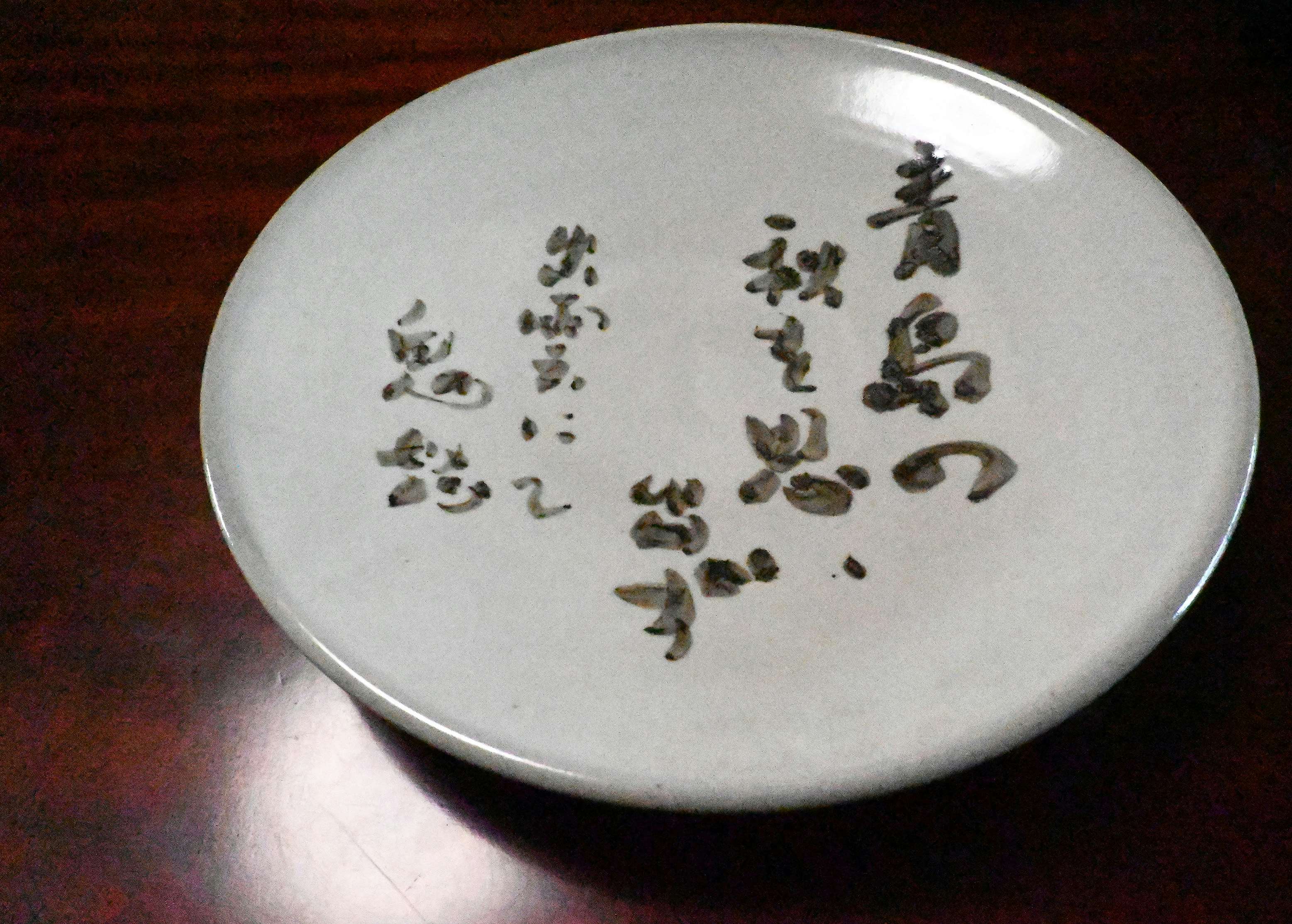 ドナルド・キーン筆 絵付皿「青島の秋を思い出ず」1985 個人蔵