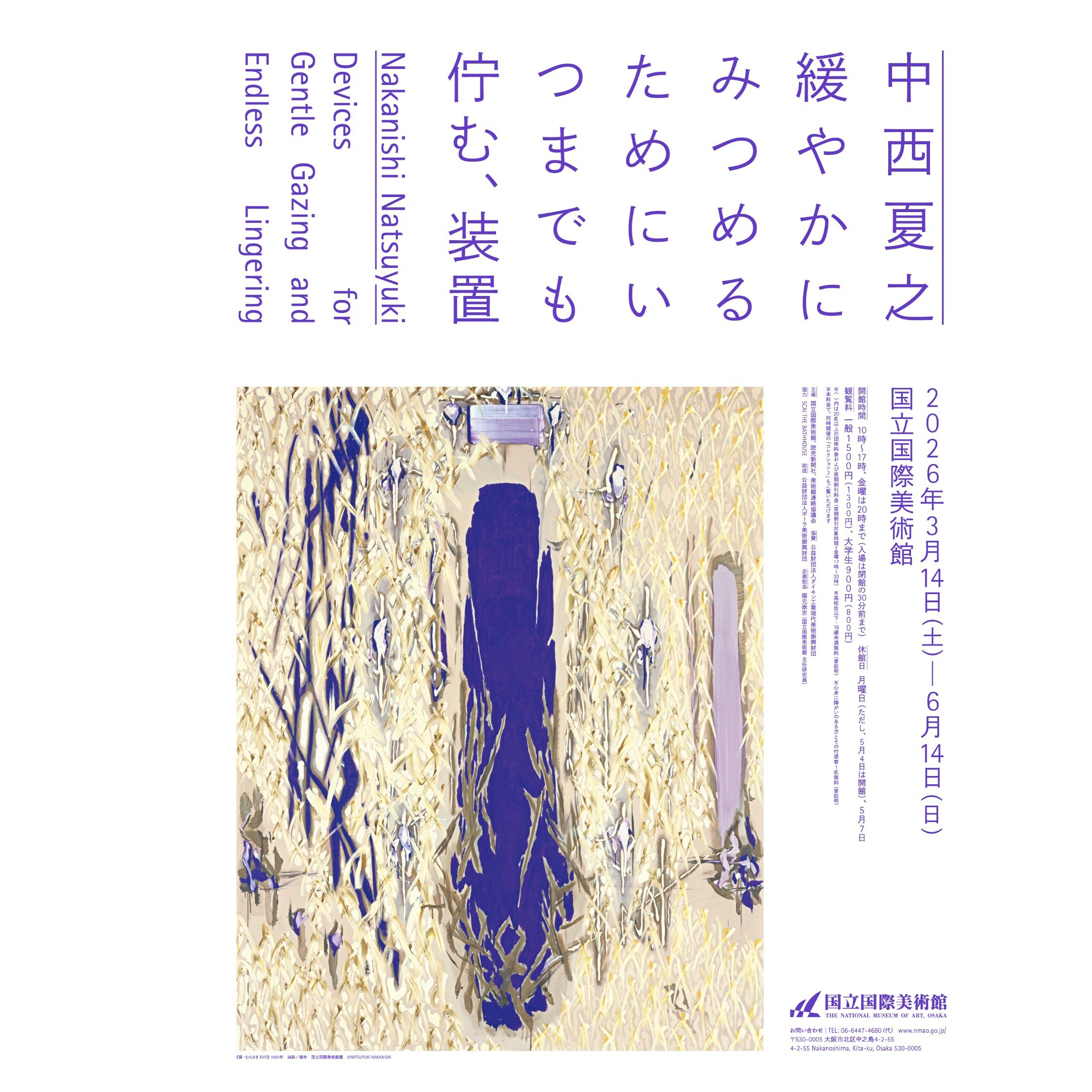大阪にある国立国際美術館で、特別展「中西夏之 緩やかにみつめるためにいつまでも佇む、装置」が開催される。会期は3月14日〜6月14日。