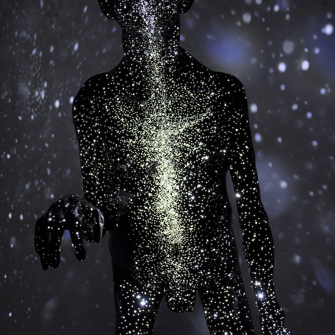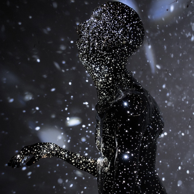 「死を目の前に向かう新境地。物事の開始点」を意味する「Threshold」と題された本展で発表する新作は、腰を曲げつつも立ち上がり、前に進もうとする立像。FRPでつくられた作品の表面には感情のメタファーとして無数の穴が開けられており、ギャラリー全体が銀河のように光り輝き、そこはまるでプラネタリウムのようだ。光を放つ立像と対峙し、大垣の提示する「生」「死」「老い」に触れてみてはいかがだろうか。
